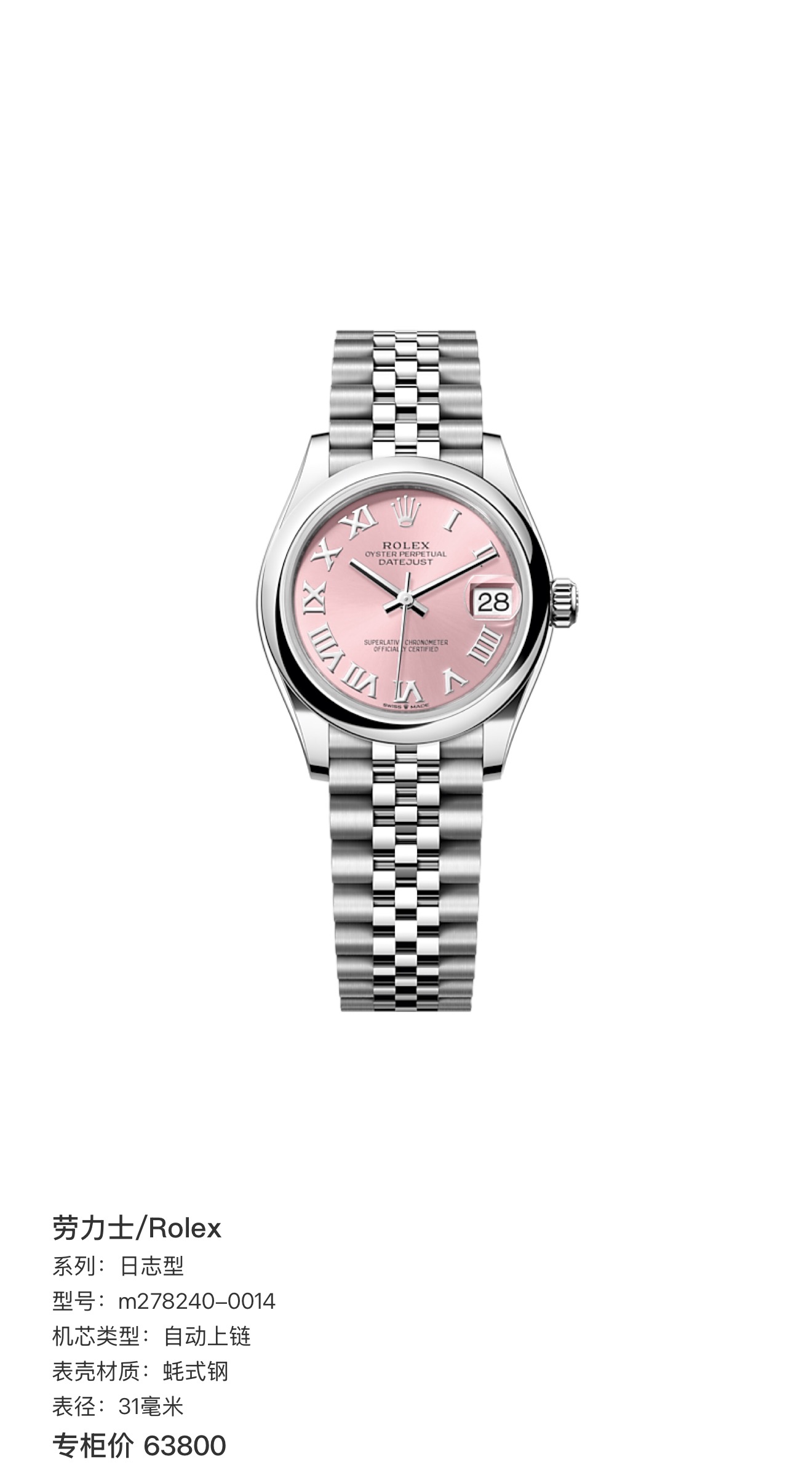 劳力士/Rolex 日志型 m278240-0014 自动上链 蚝式钢 31毫米 专柜价63800,极品全套