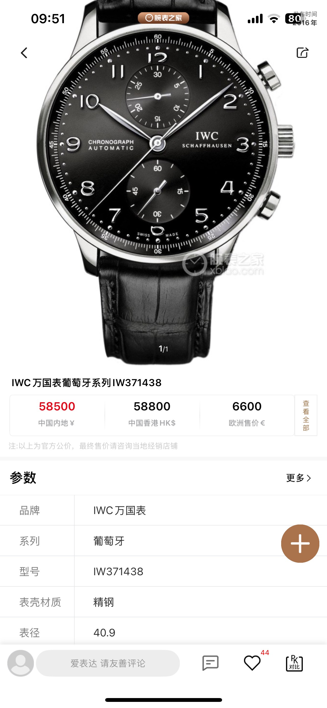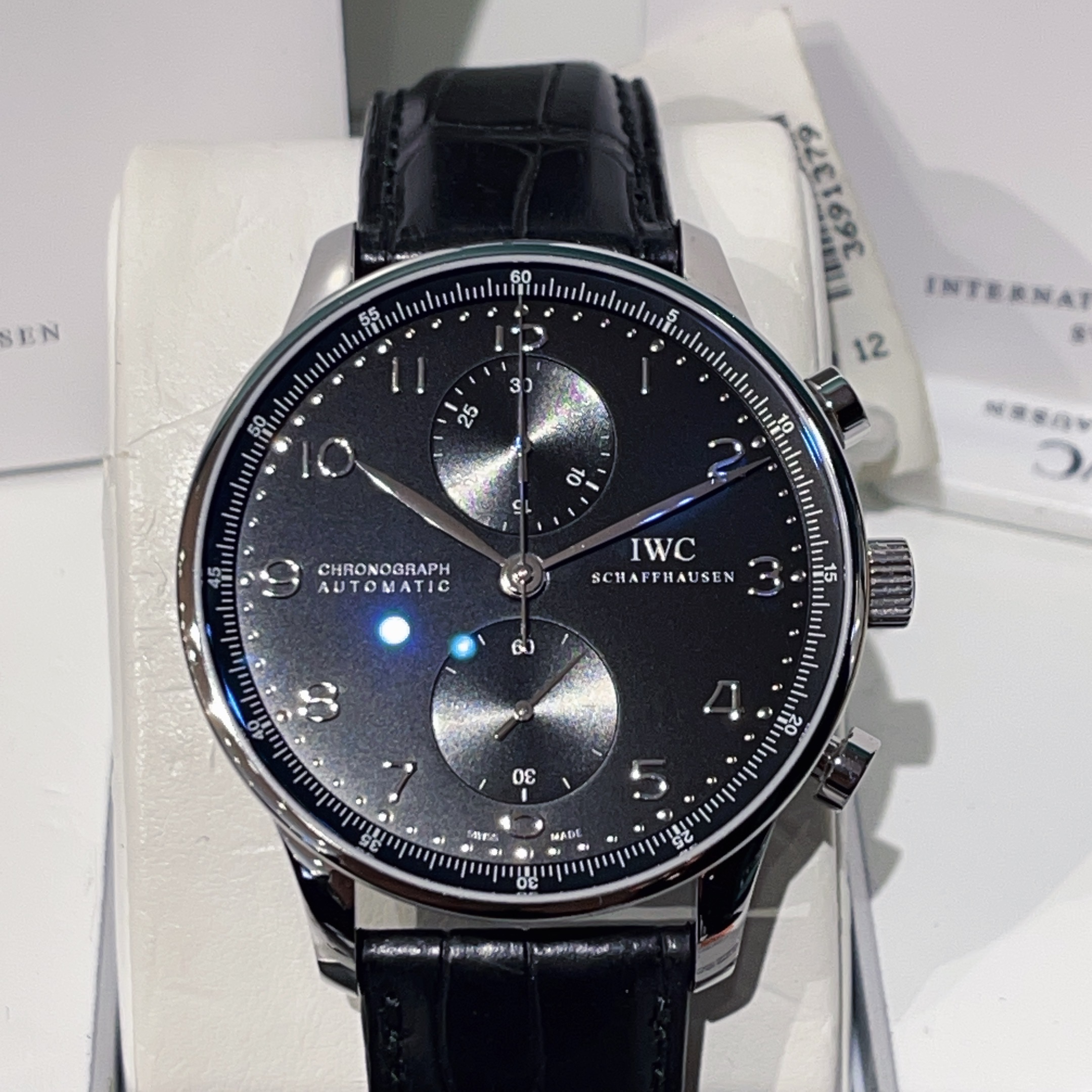闲置品未使用~万国葡萄牙系列IW371438男士自动机械腕表 精钢材质 表径40.9mm 专柜58500。