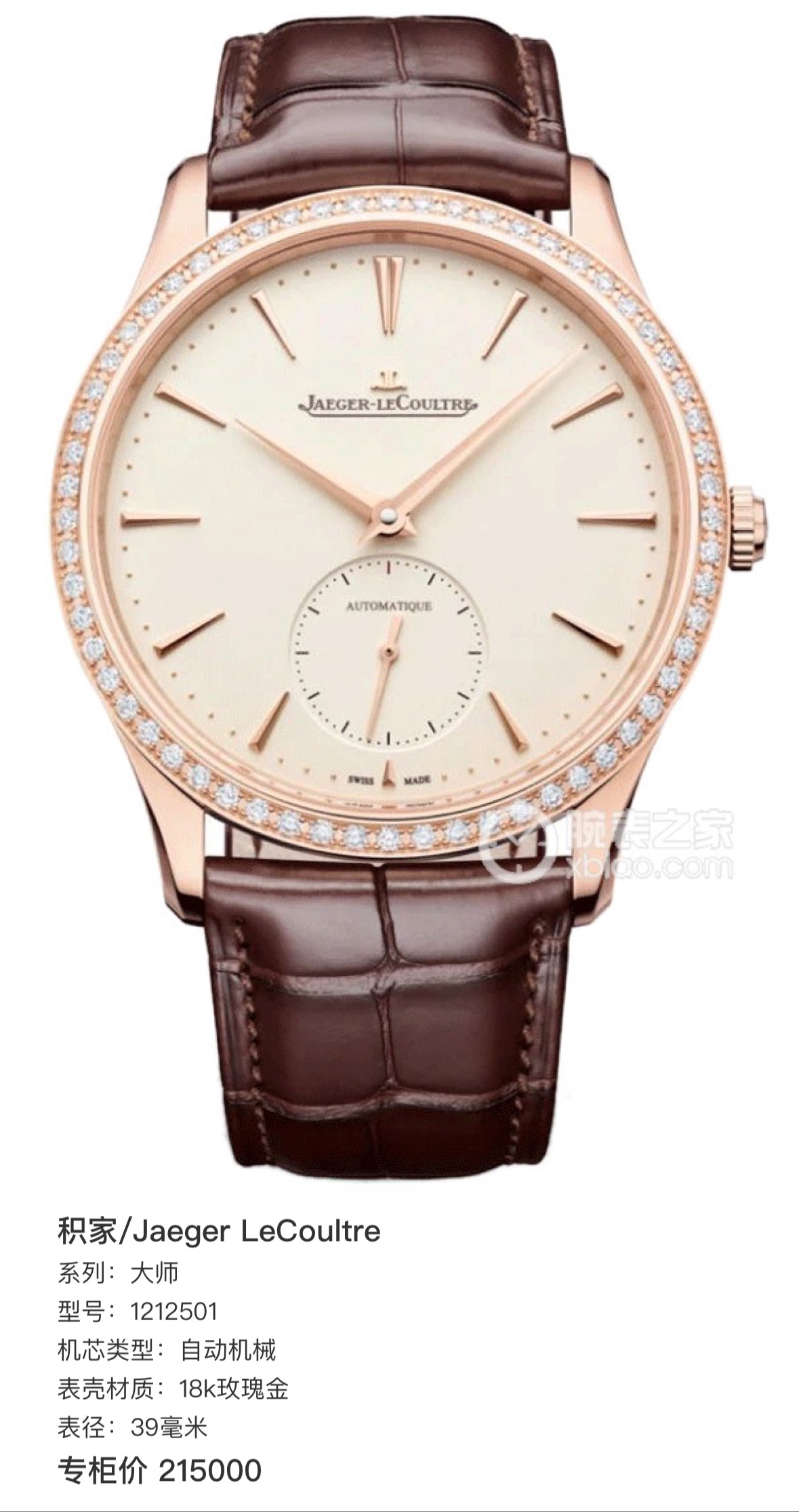 闲置品未使用当天卡积家/Jaeger LeCoultre 大师 1212501 自动机械 18k玫瑰金 39毫米
