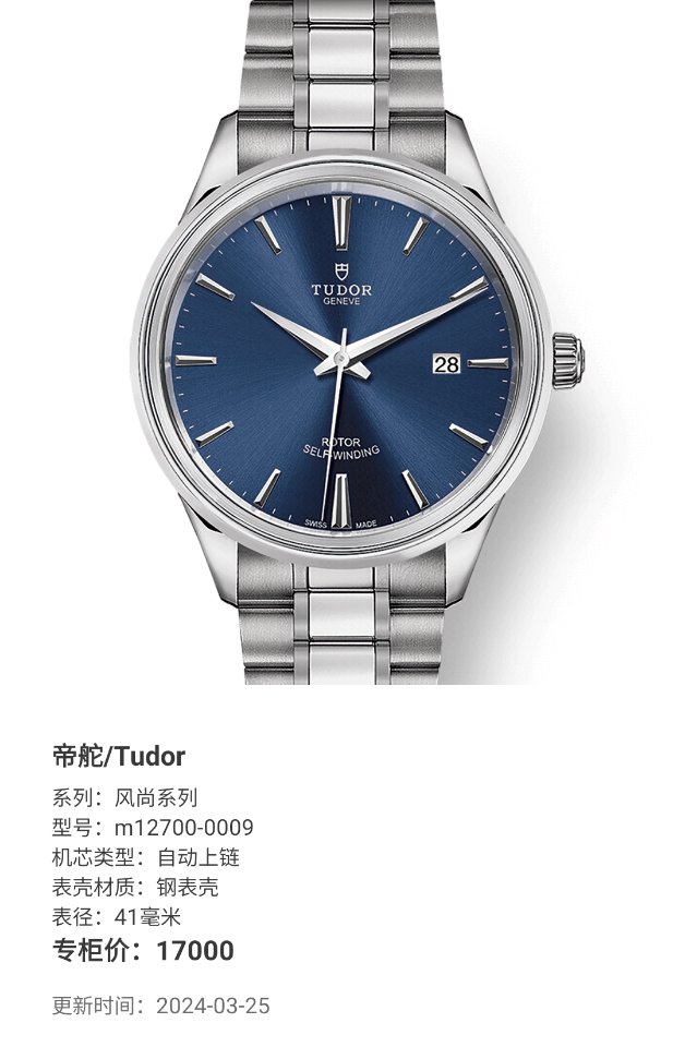 帝舵/Tudor 风尚系列 m12700-0009 自动上链 钢表壳 41毫米 专柜价17000 22年8月未使用,全膜,稀缺
