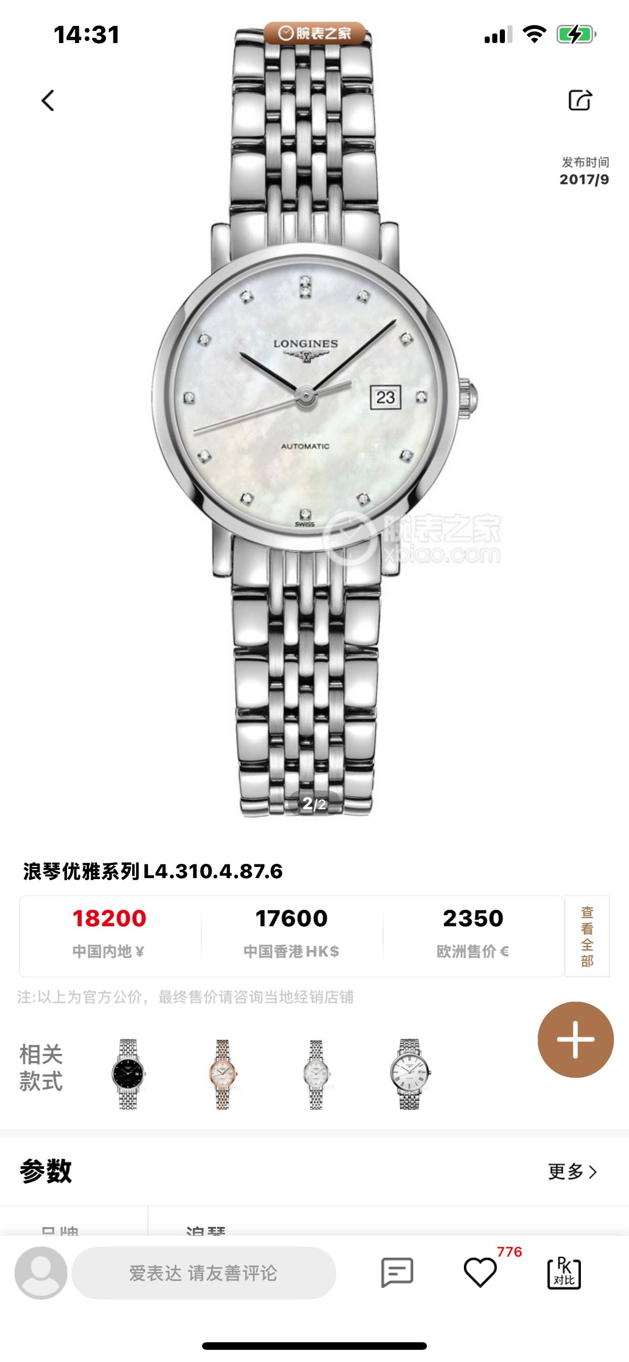 浪琴博雅L4.310.4.87.6机械女性