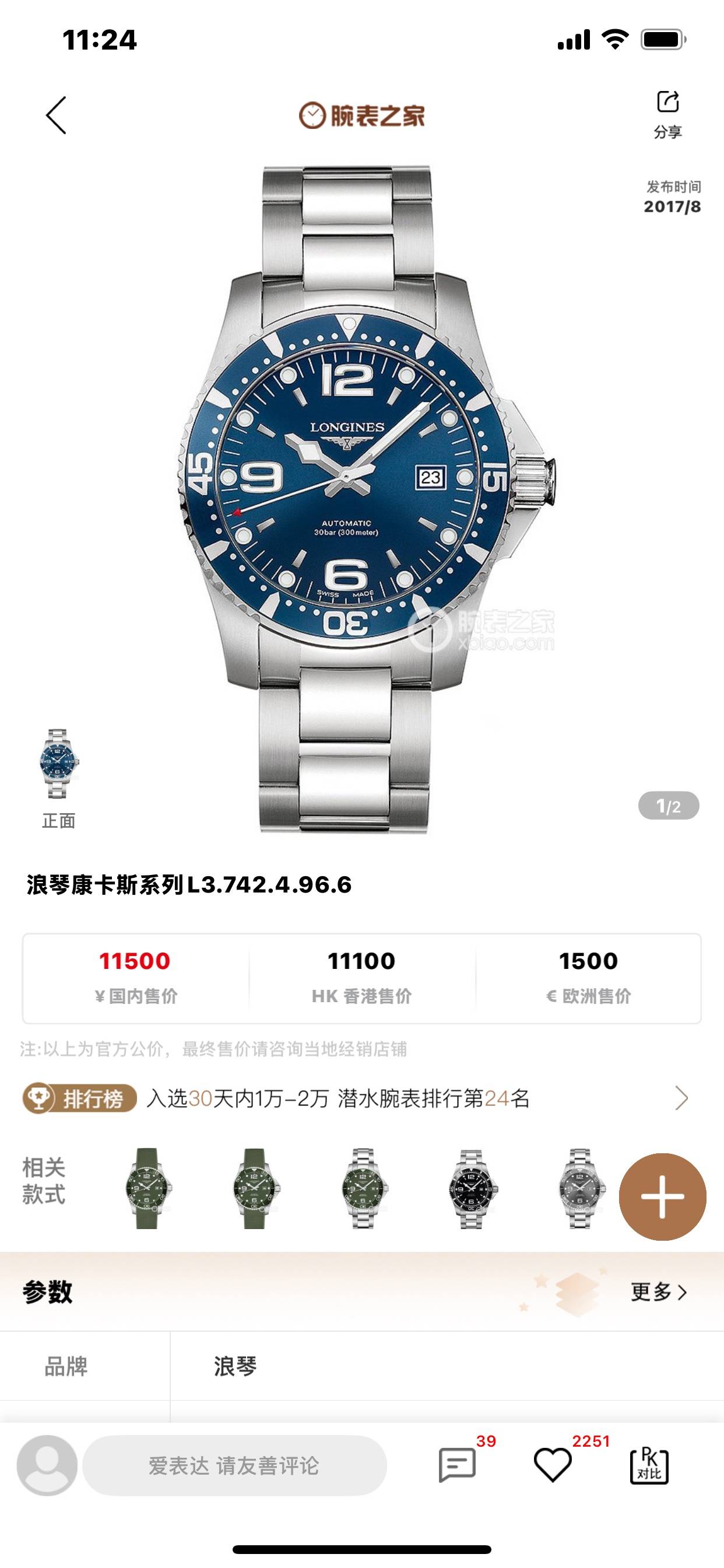 浪琴 蓝盘 24年购买保卡 总重178.87克