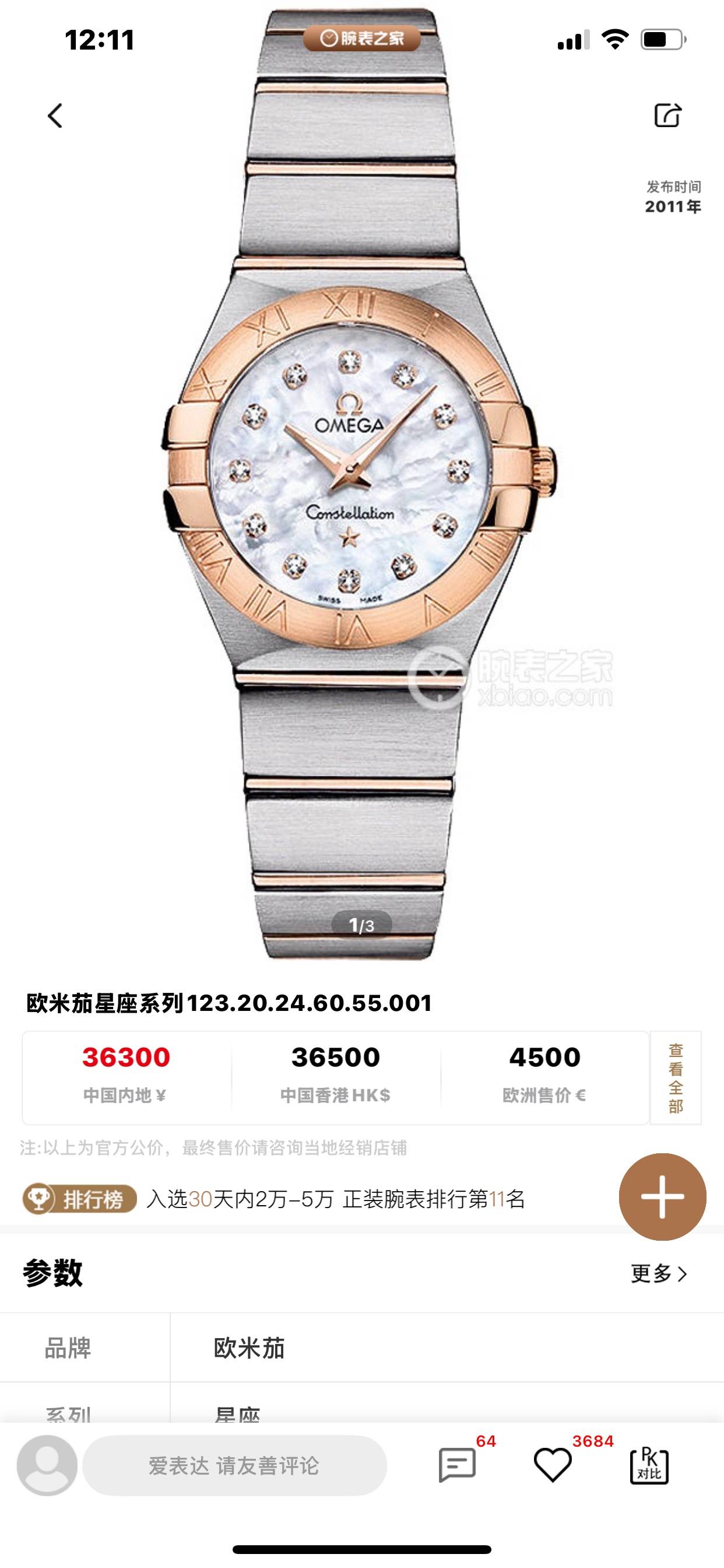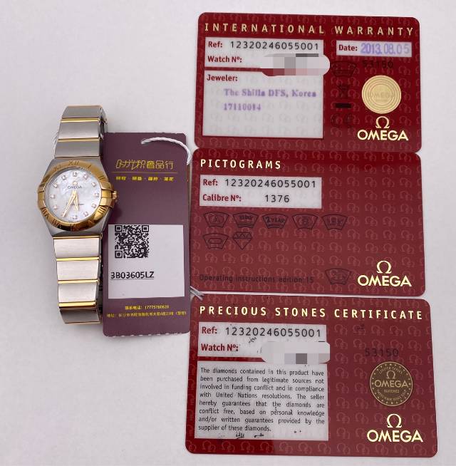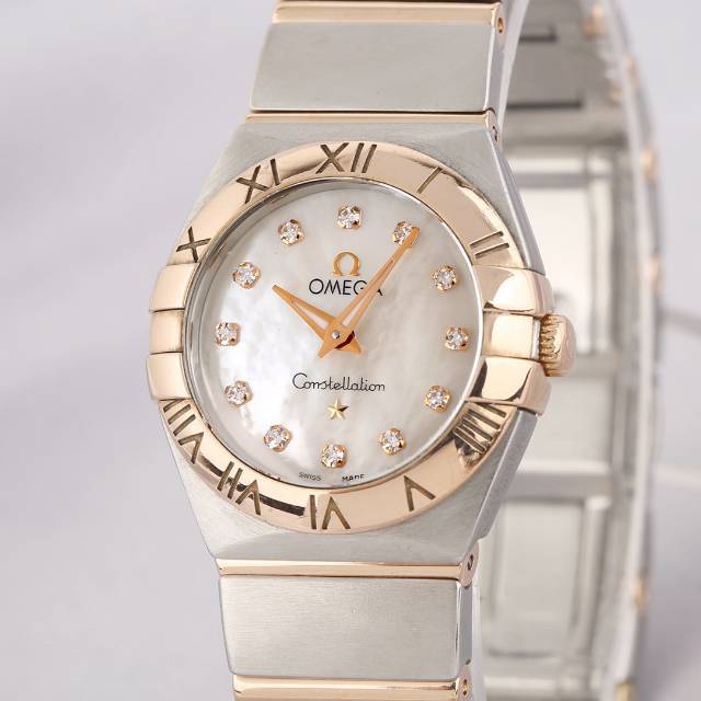 表盘材质:珍珠贝母,镶嵌12颗钻石