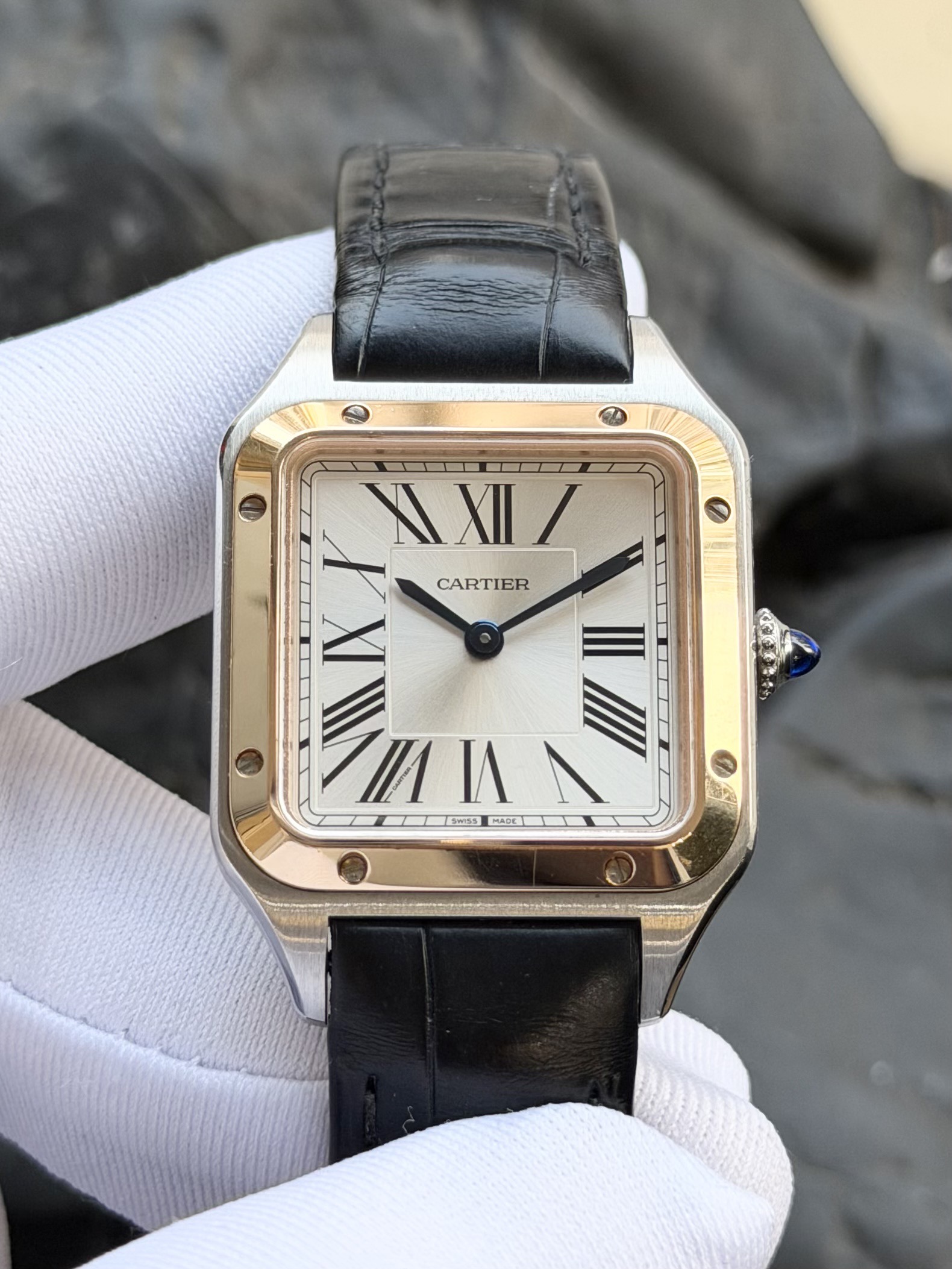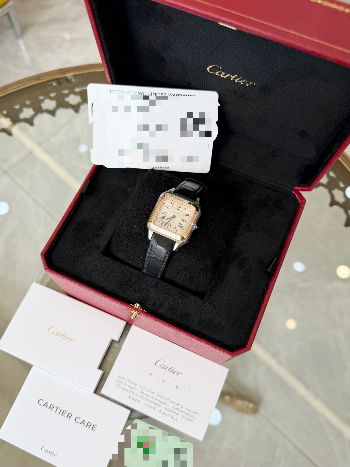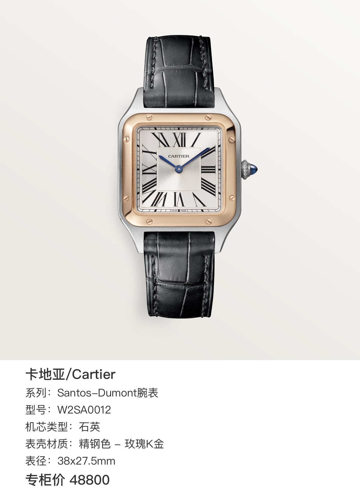 卡地亚,Santos-Dumont腕表,型号W2SA0012,石英机芯,18K玫瑰金,表径38x27.5mm,