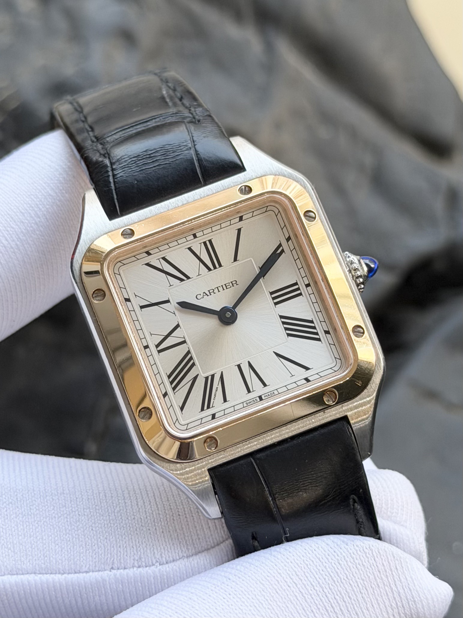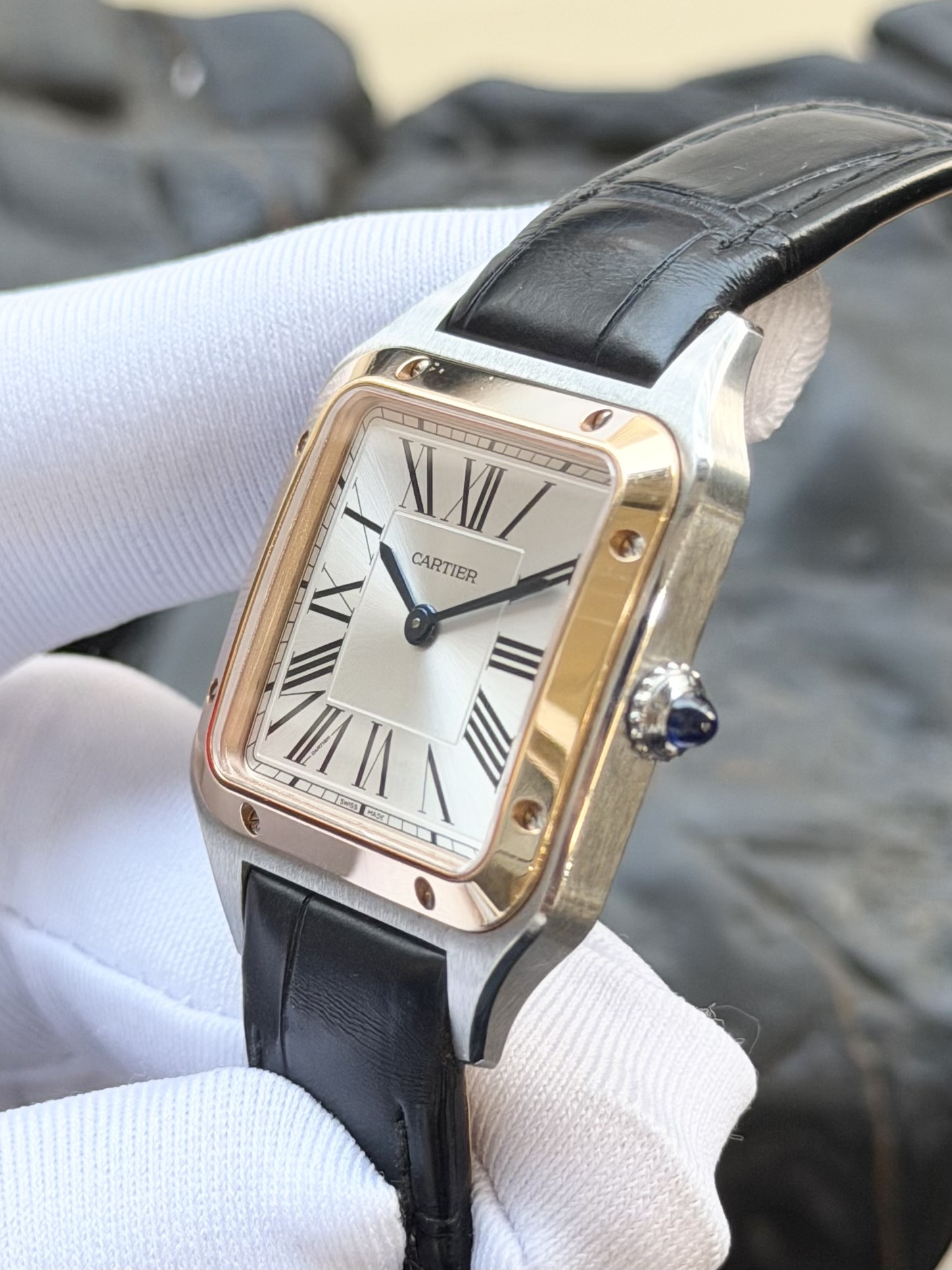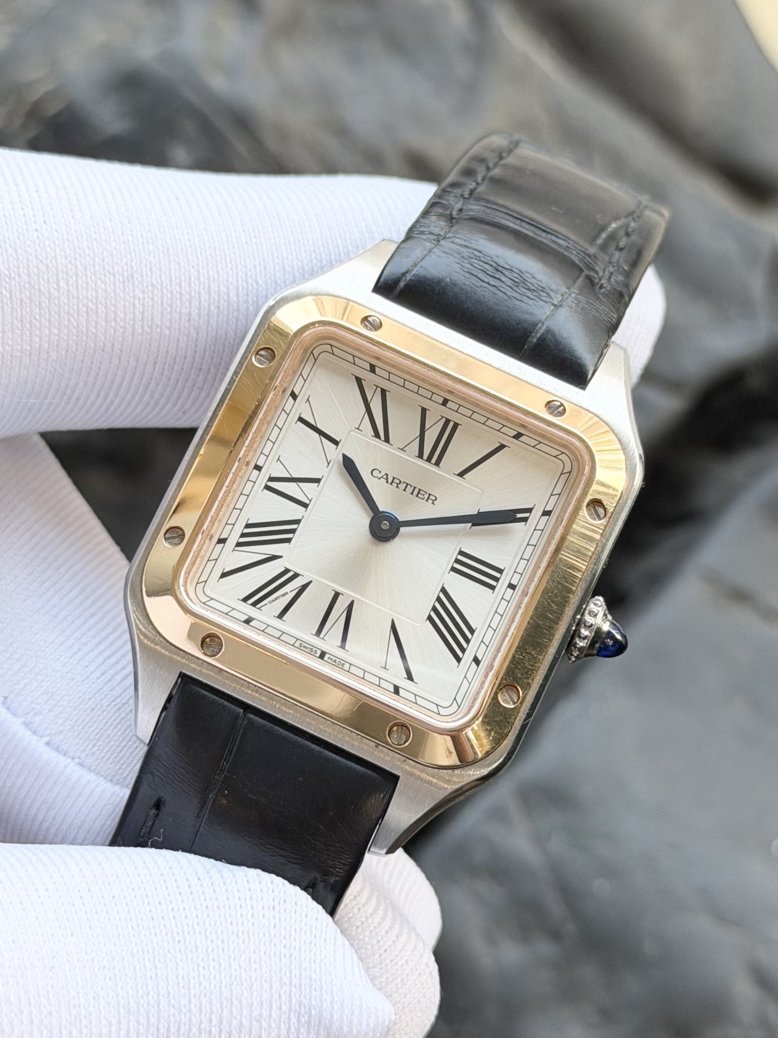 卡地亚,Santos-Dumont腕表,型号W2SA0012,石英机芯,18K玫瑰金,表径38x27.5mm,