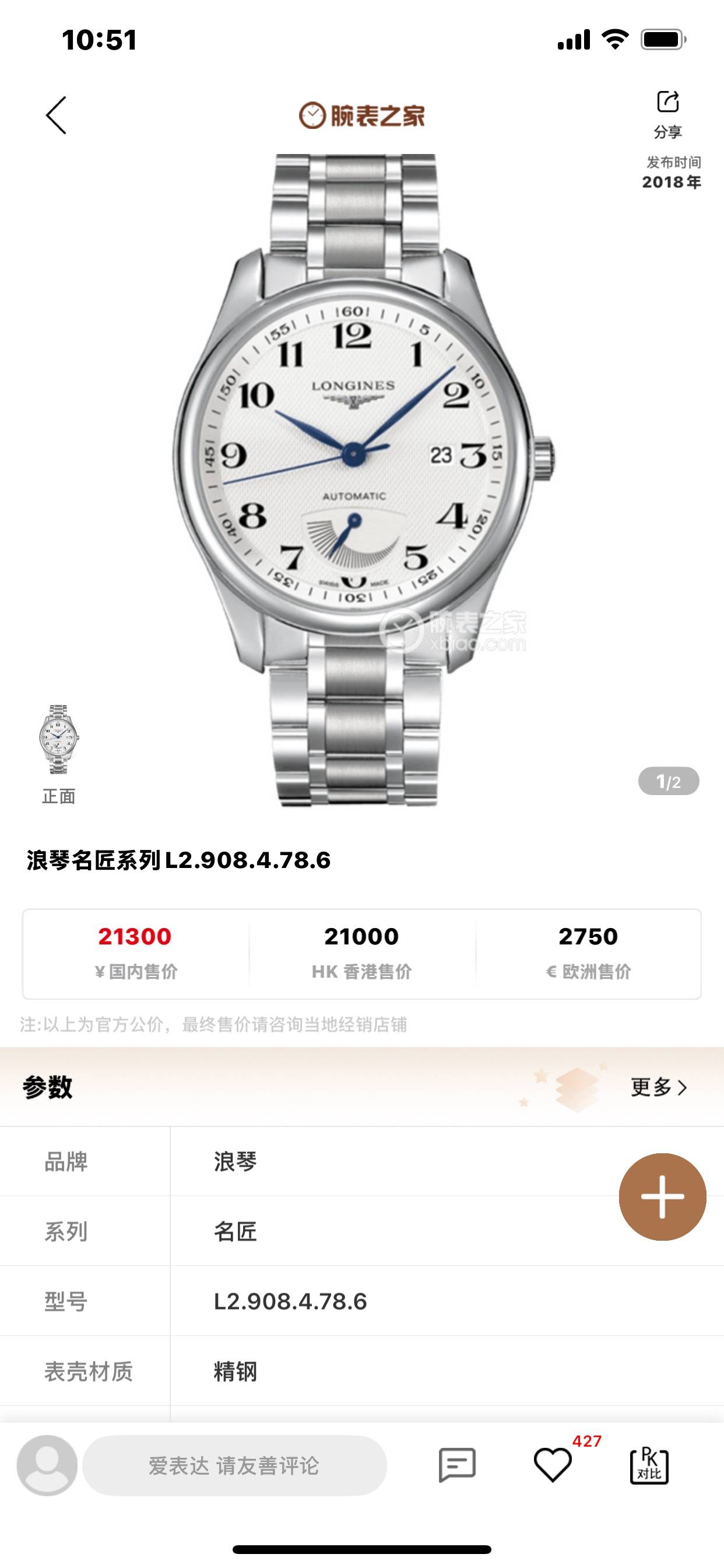 浪琴名匠L2.908.4.78.6机械男性