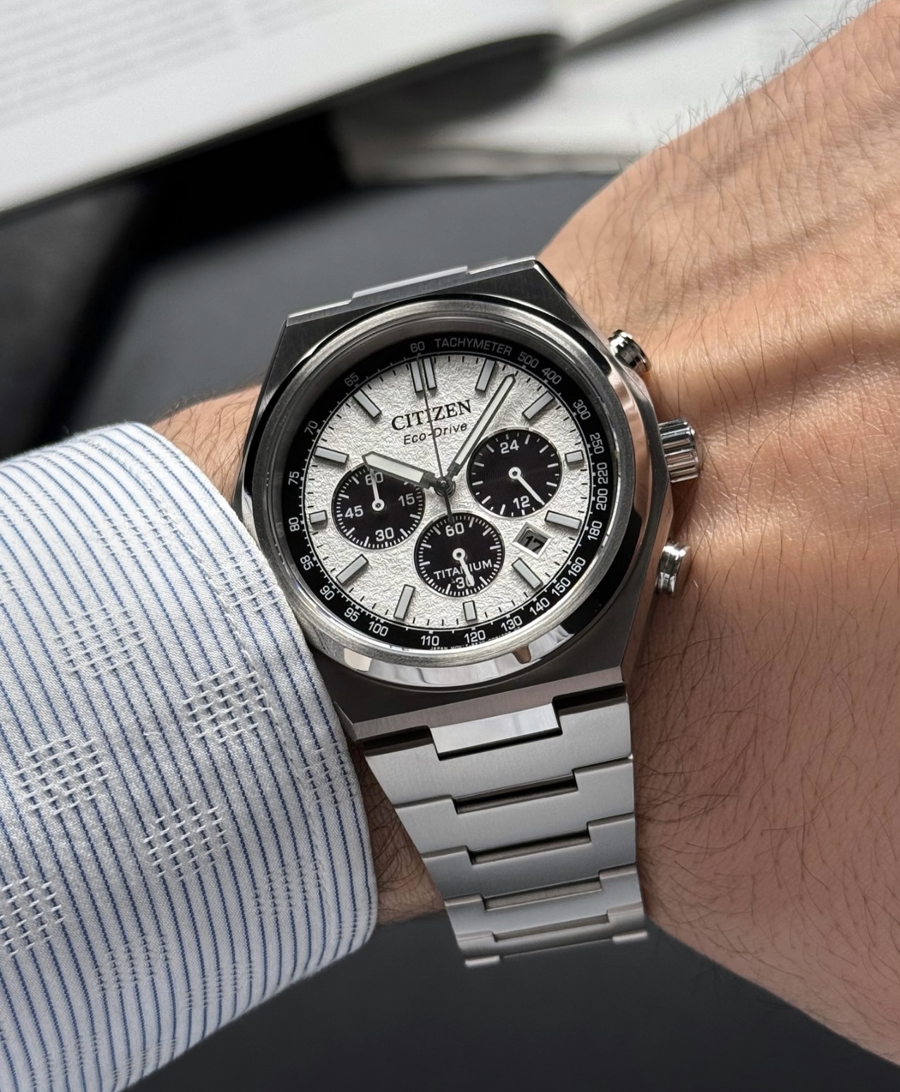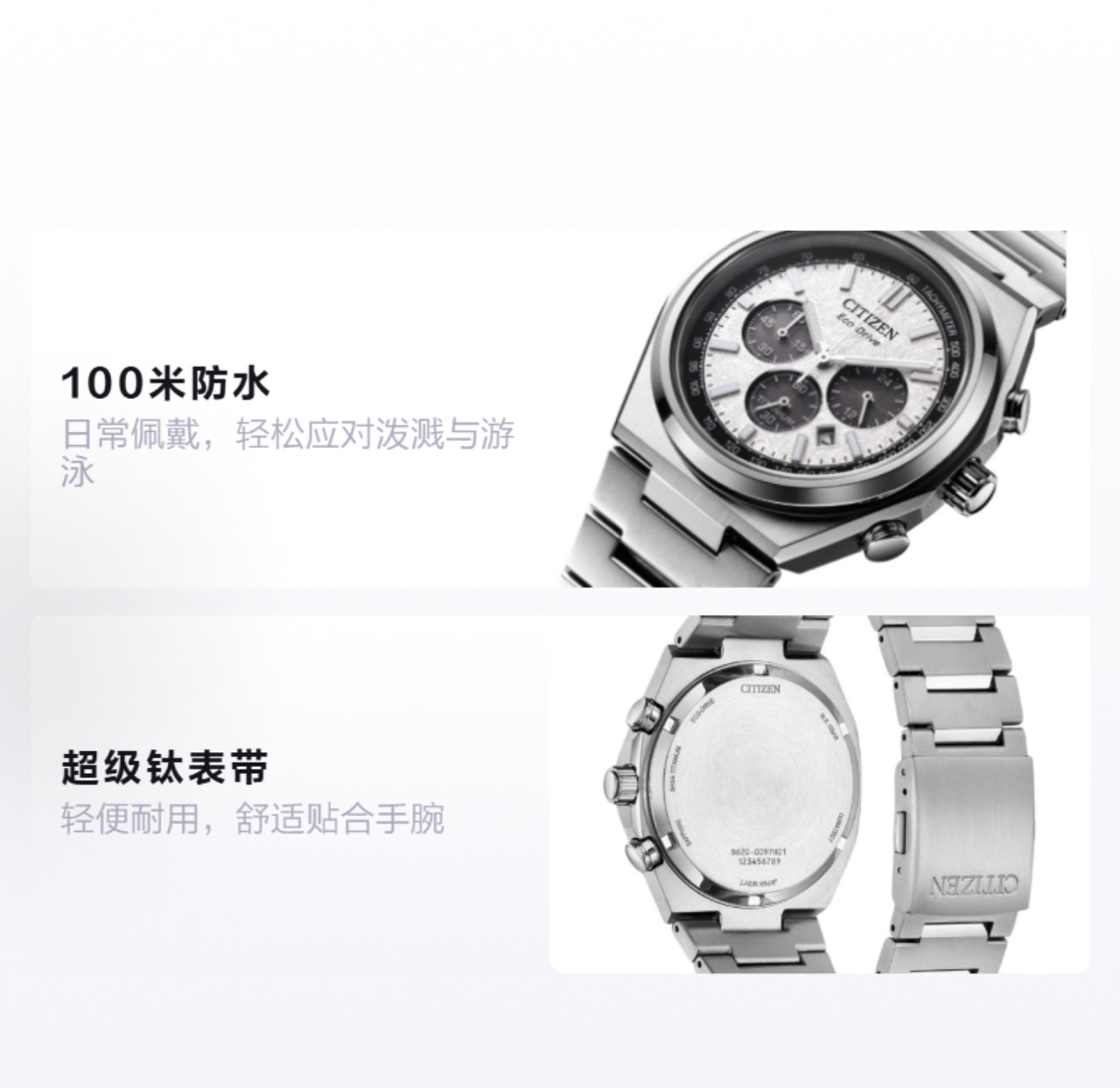 CITIZEN西铁城 100米防水 CA4610-85A光能石英机芯 超级钛表带 日韩表 42.5mm 男表 白色表盘 专柜售价4800 全新全套品牌直供,特价