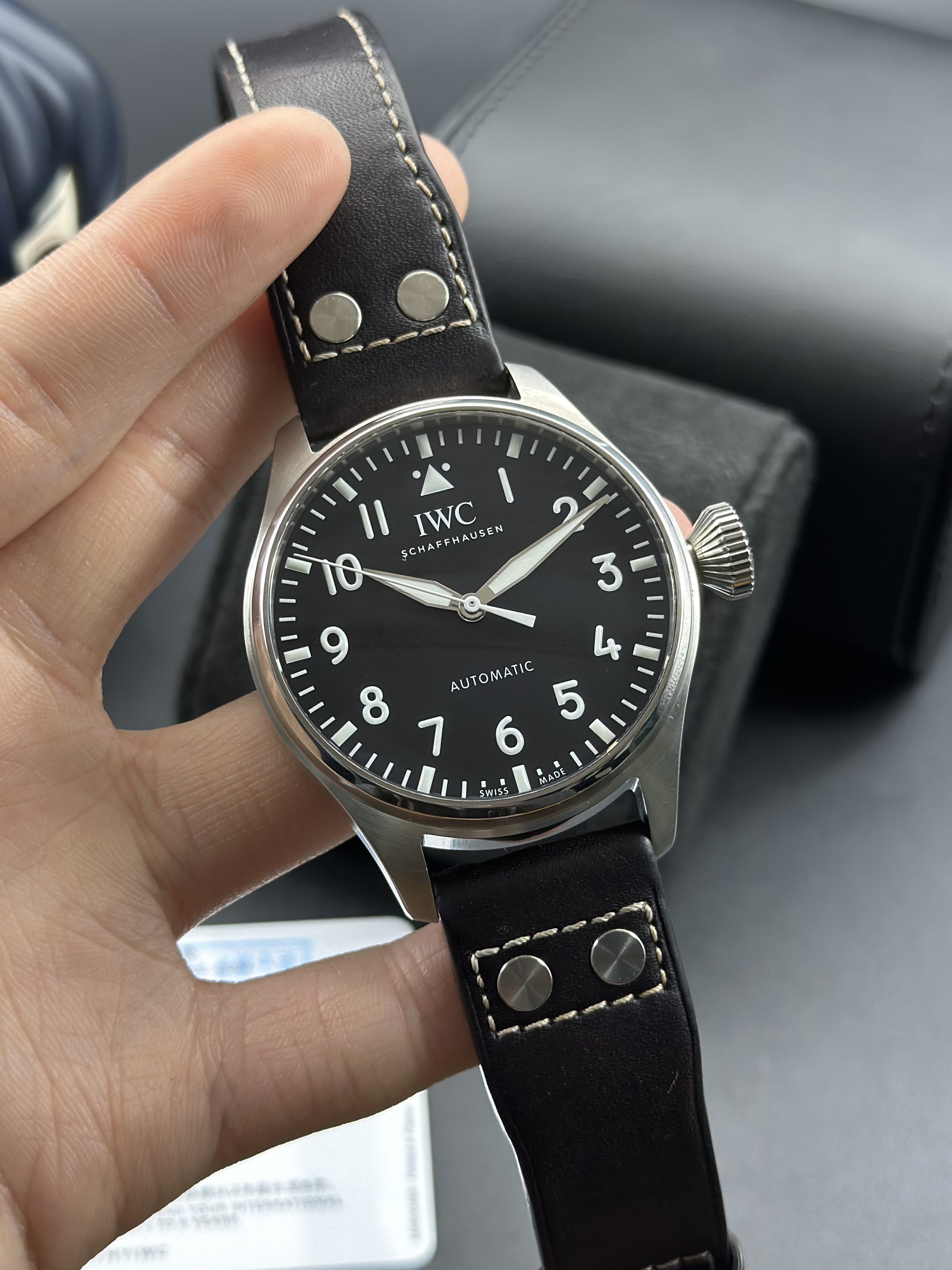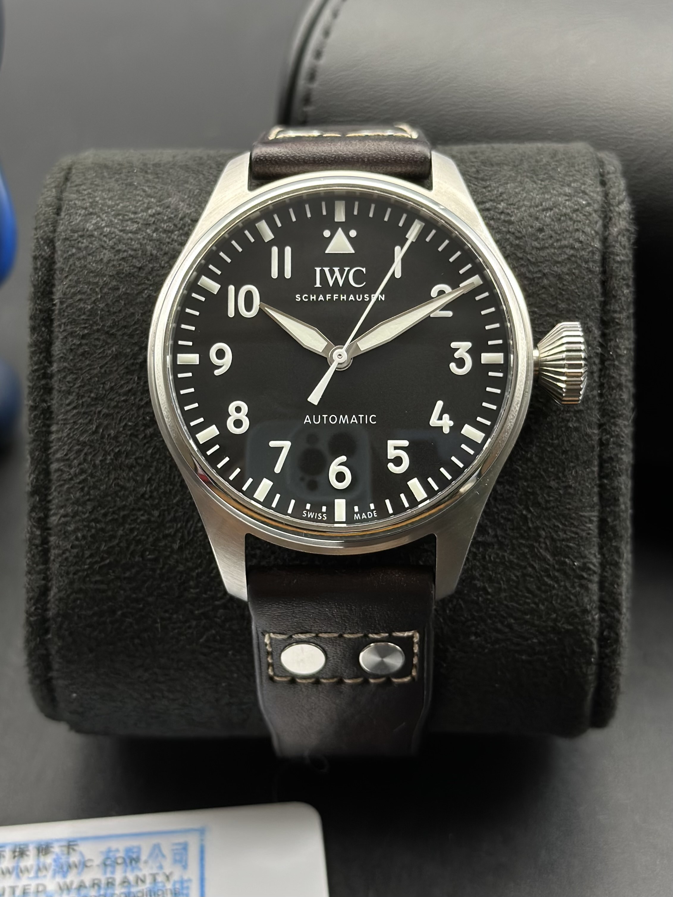 万国/IWC 飞行员腕表 大飞IW329301 自动机械82100机芯 精钢/皮带(快拆)43毫米黑色表盘 精品表况2021年便携盒全套延保至2029年 公价74200 现货特价