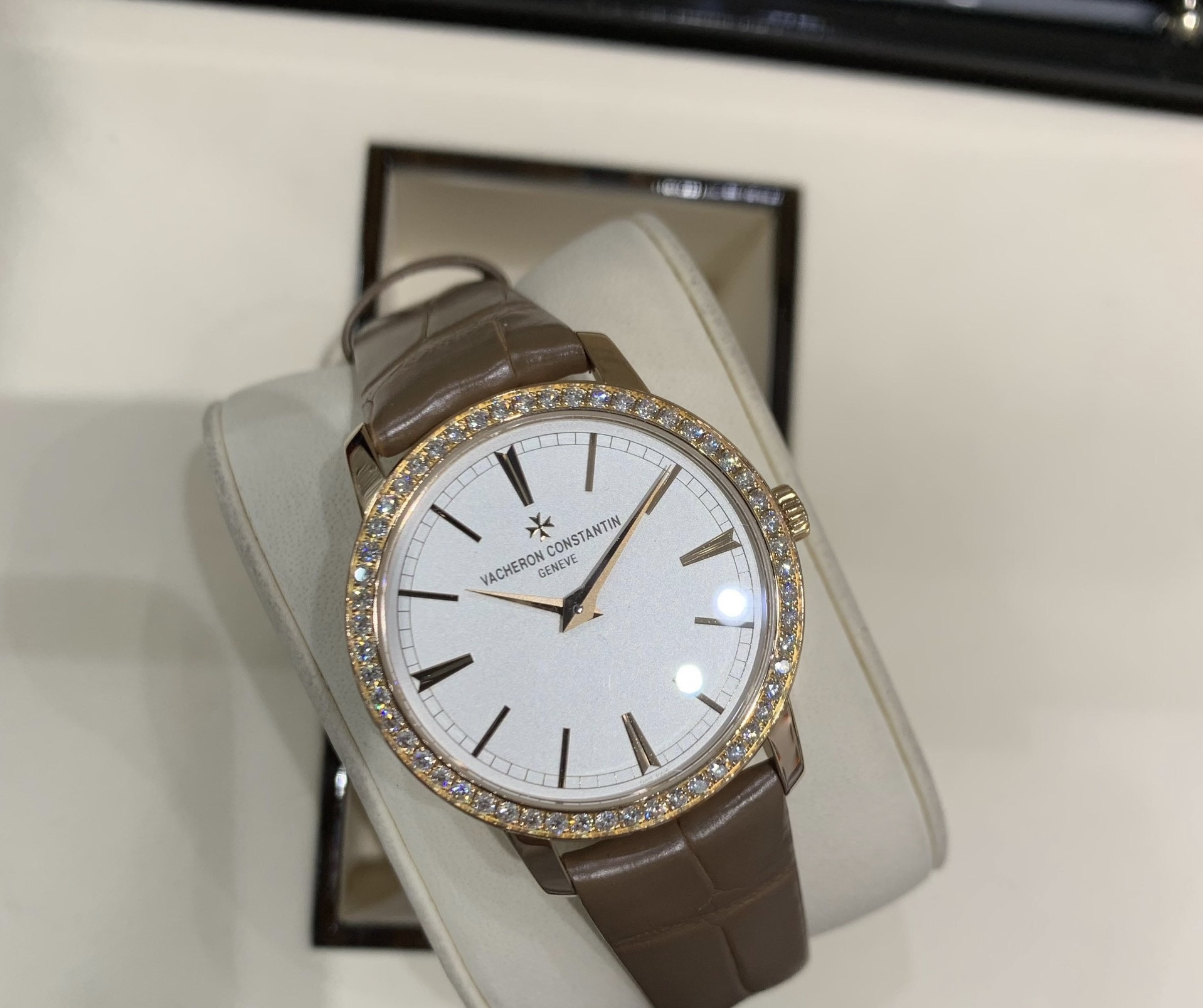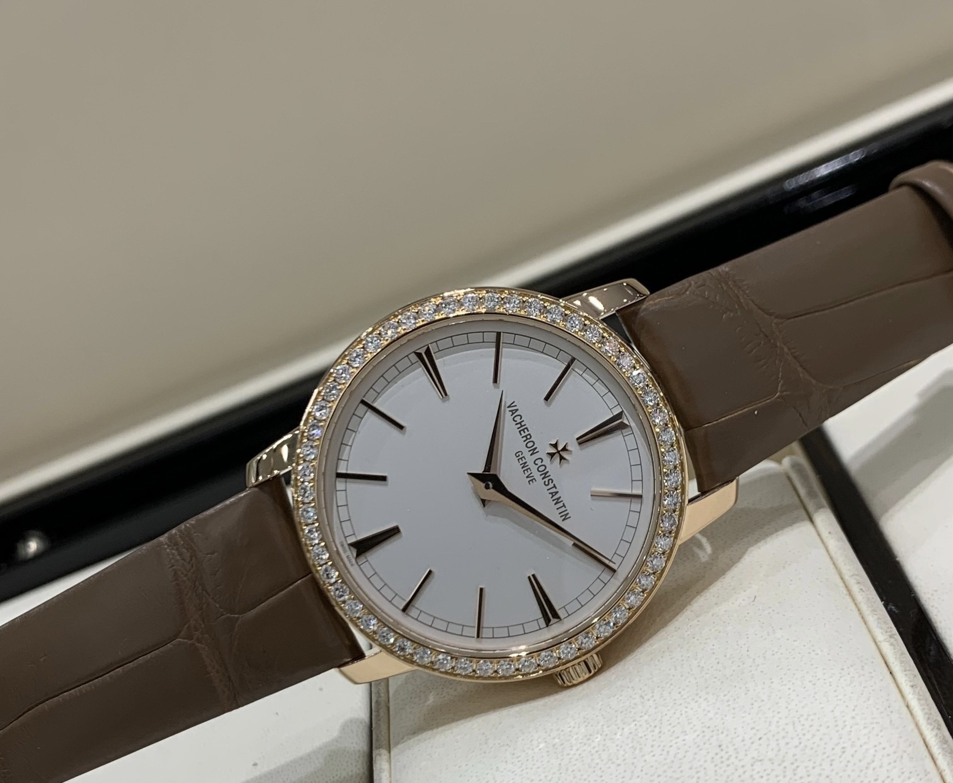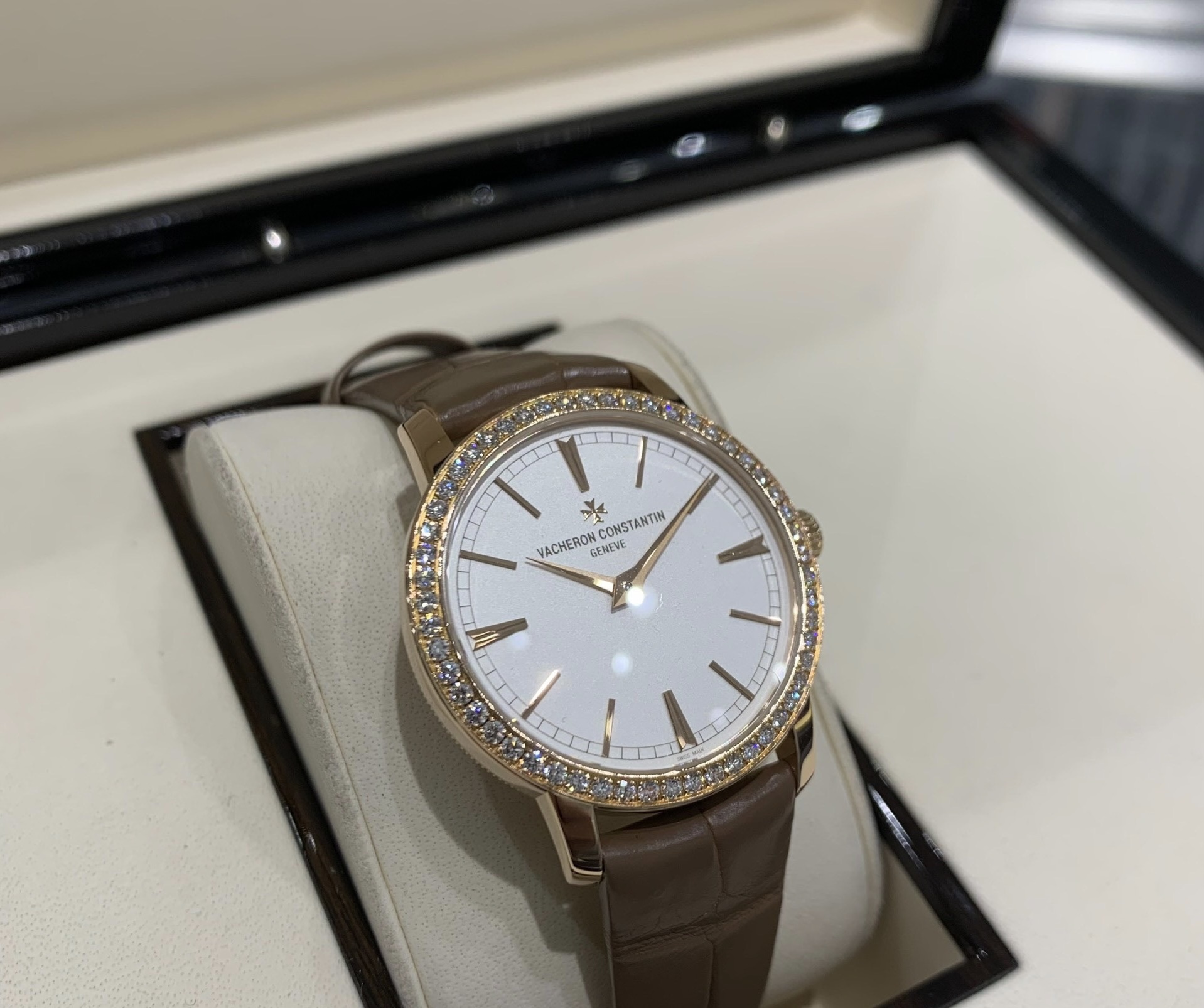 33mm表径,18k玫瑰金材质表壳,镶钻表壳