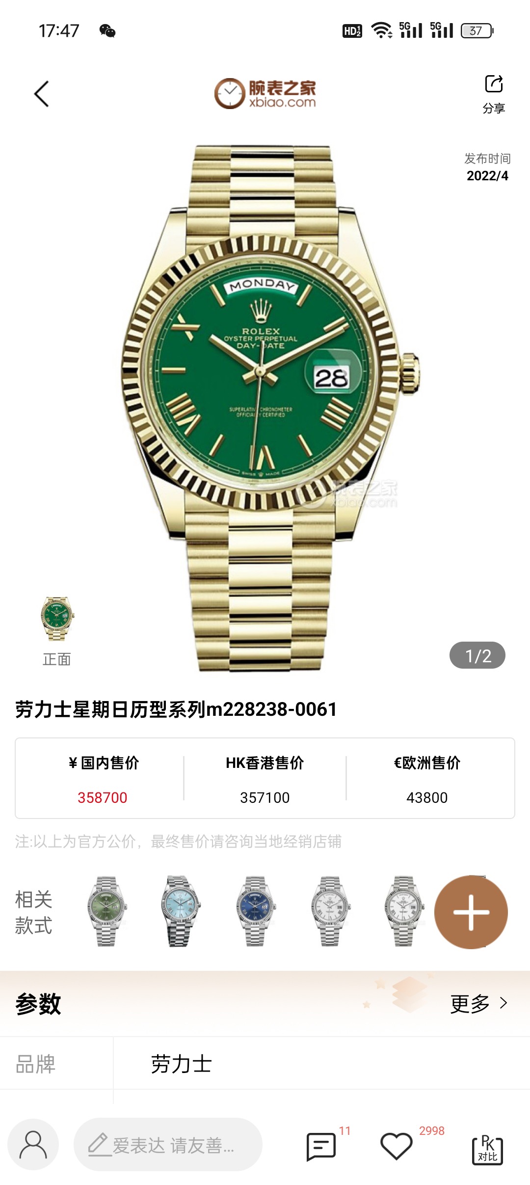 劳力士星期日历型M228238-0061机械男性