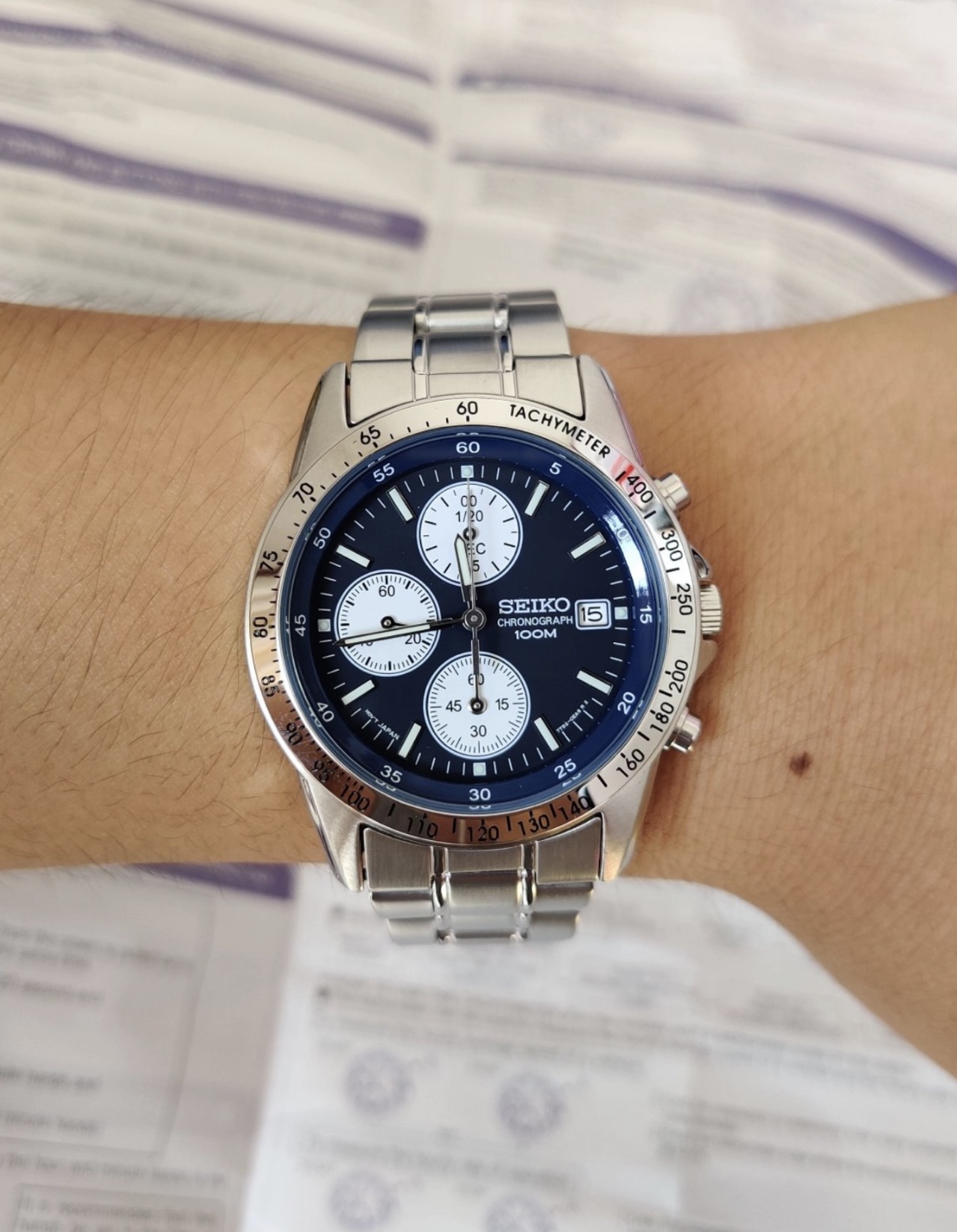 SEIKO精工 100米防水深度 SND365PC石英机芯 不锈钢表带 日韩表 男表 蓝色表盘 38表径 专柜售价3900 全新全套未使用近期保卡,预订