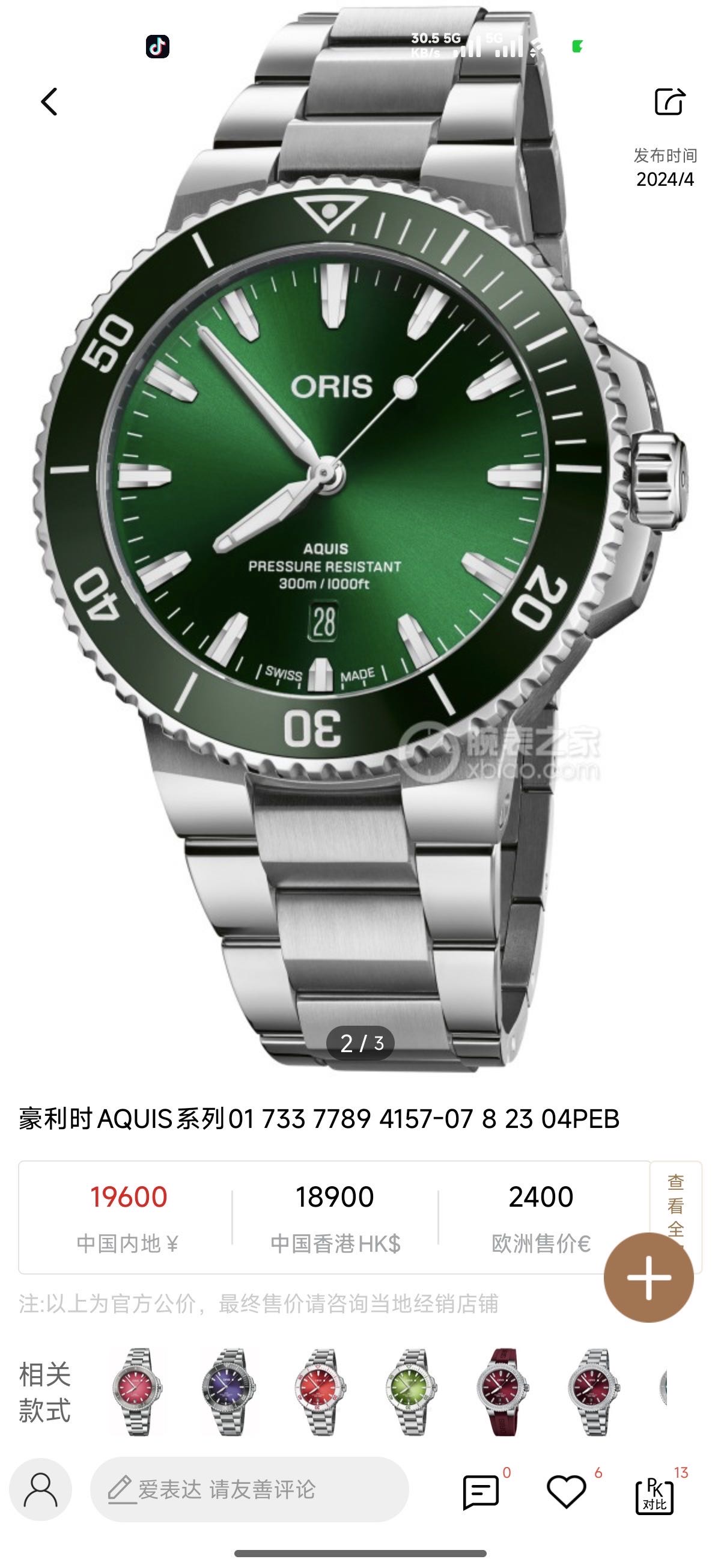 豪利时AQUIS系列01 733 7789 4157-07 8 23 04PEB(01733778941570782304PEB)手表