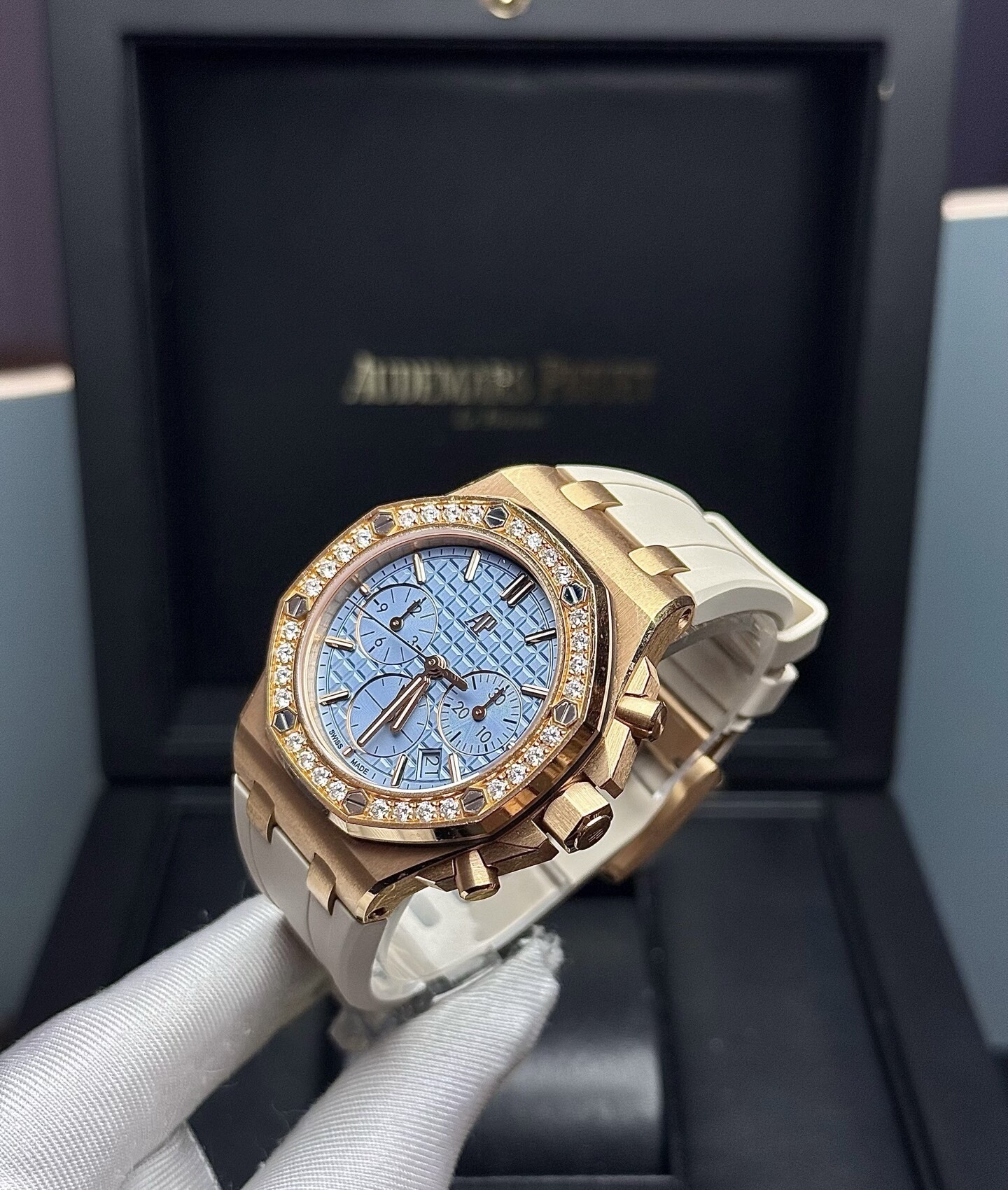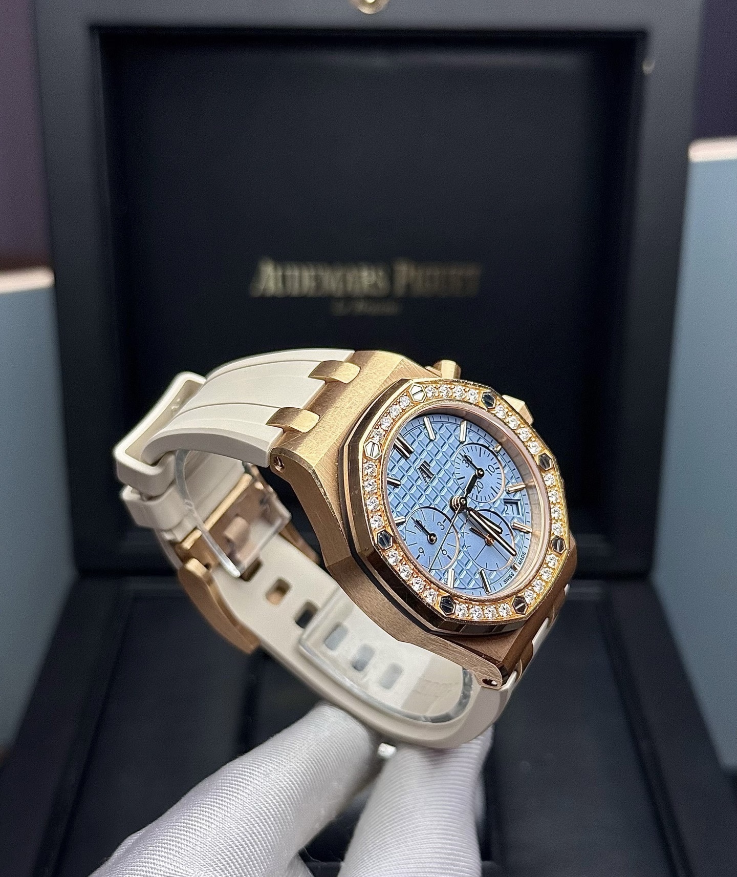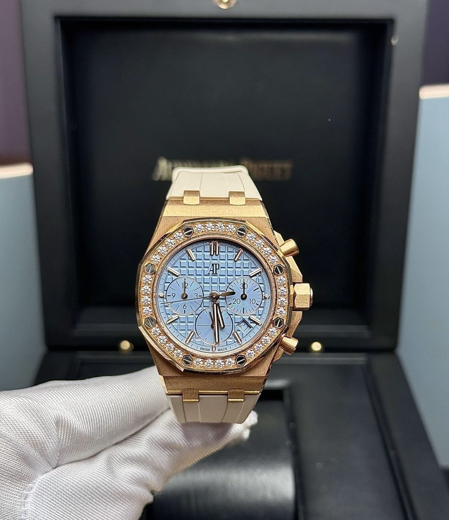 37mm表径,18k玫瑰金镶钻,日期显示,计时