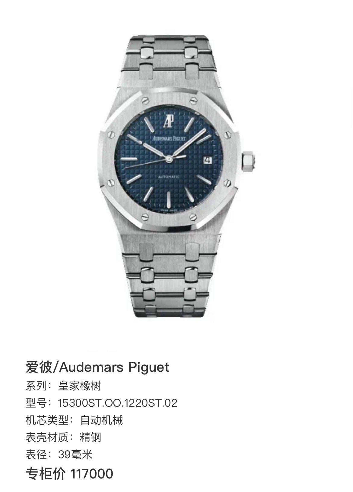 爱彼皇家橡树Royal Oak15300ST.OO.1220ST.02机械男性