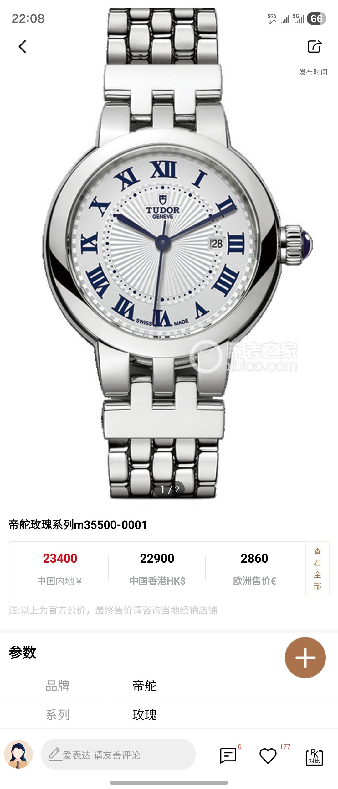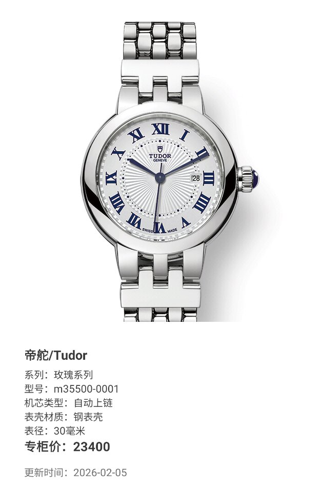 帝舵/Tudor 玫瑰系列 m35500-0001 自动上链 钢表壳 30毫米 专柜价23400 23年5月保卡。库存未使用,全膜。带杭州大厦销售发票