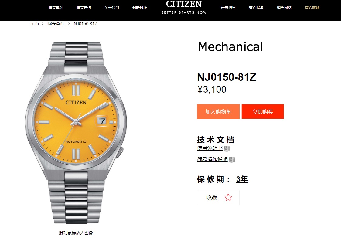 西铁城/Citizen 40MM 不锈钢 机械 男表 NJ0150-81Z