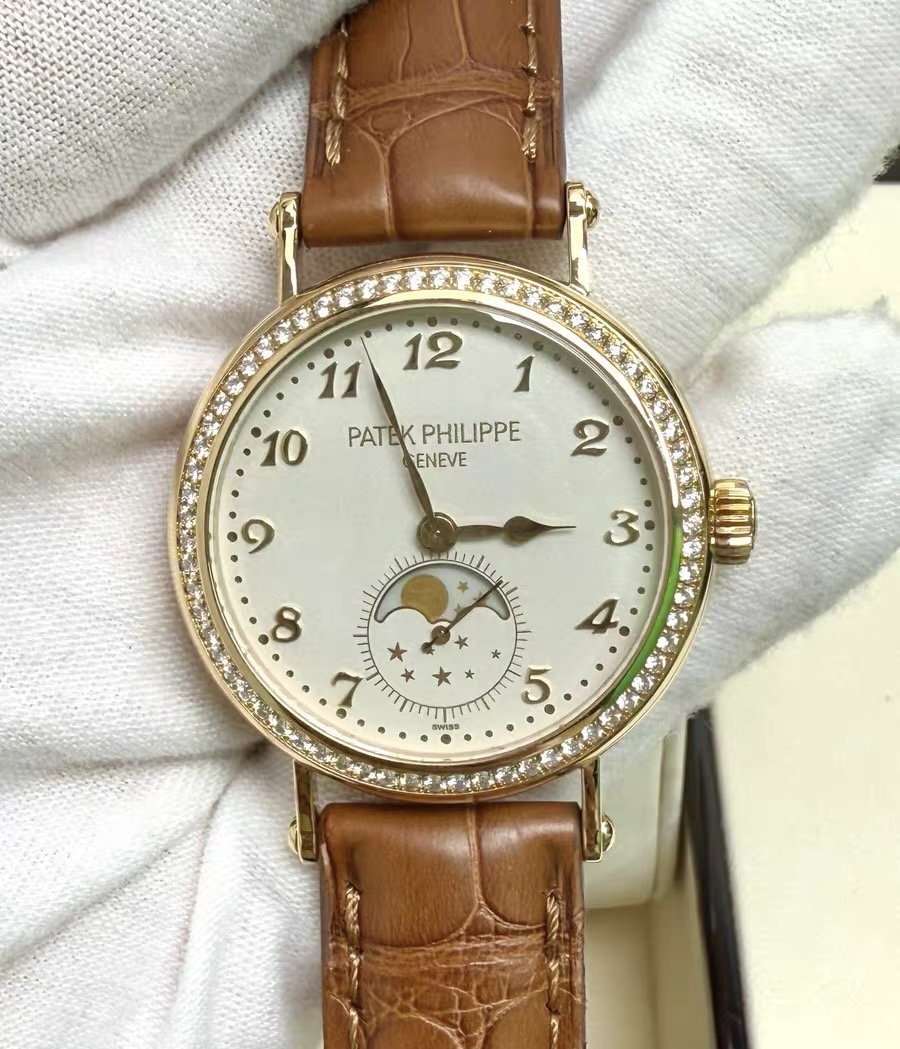 33mm表径,18k黄金材质表壳,月相