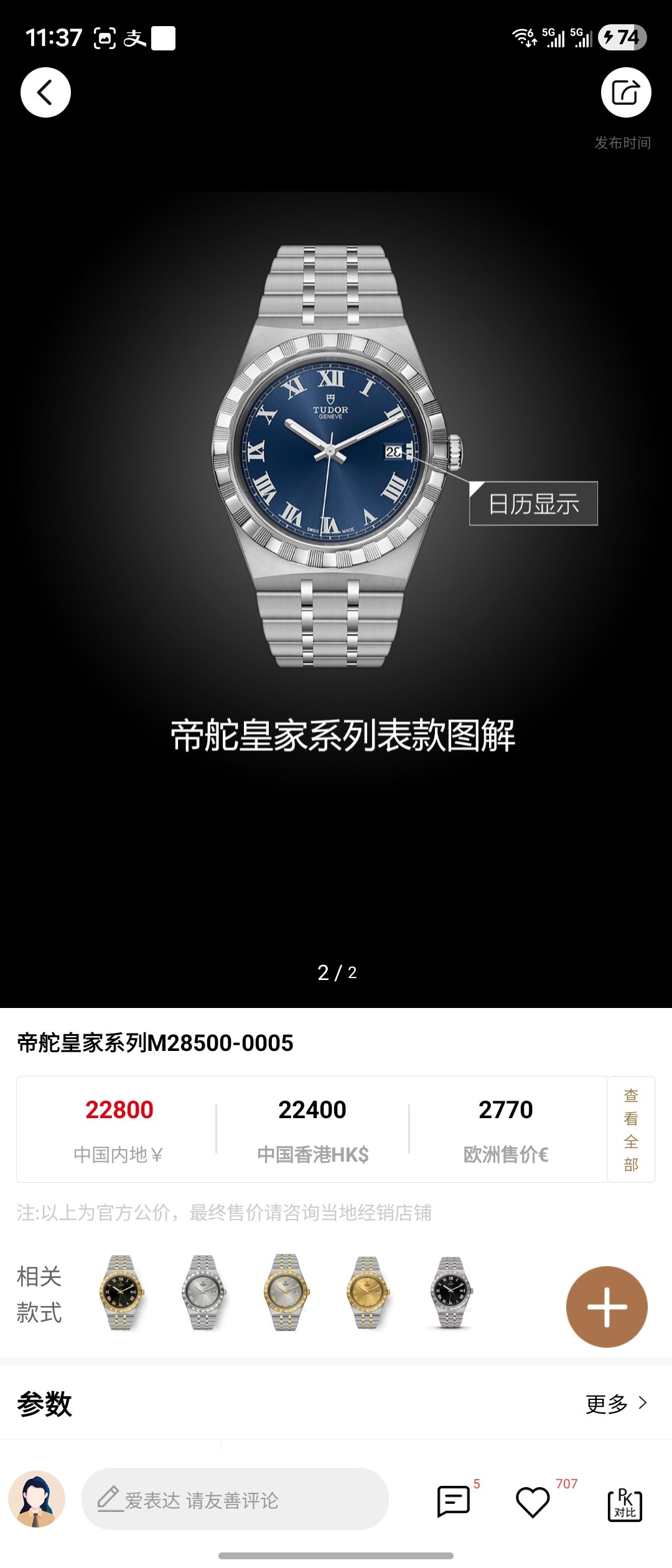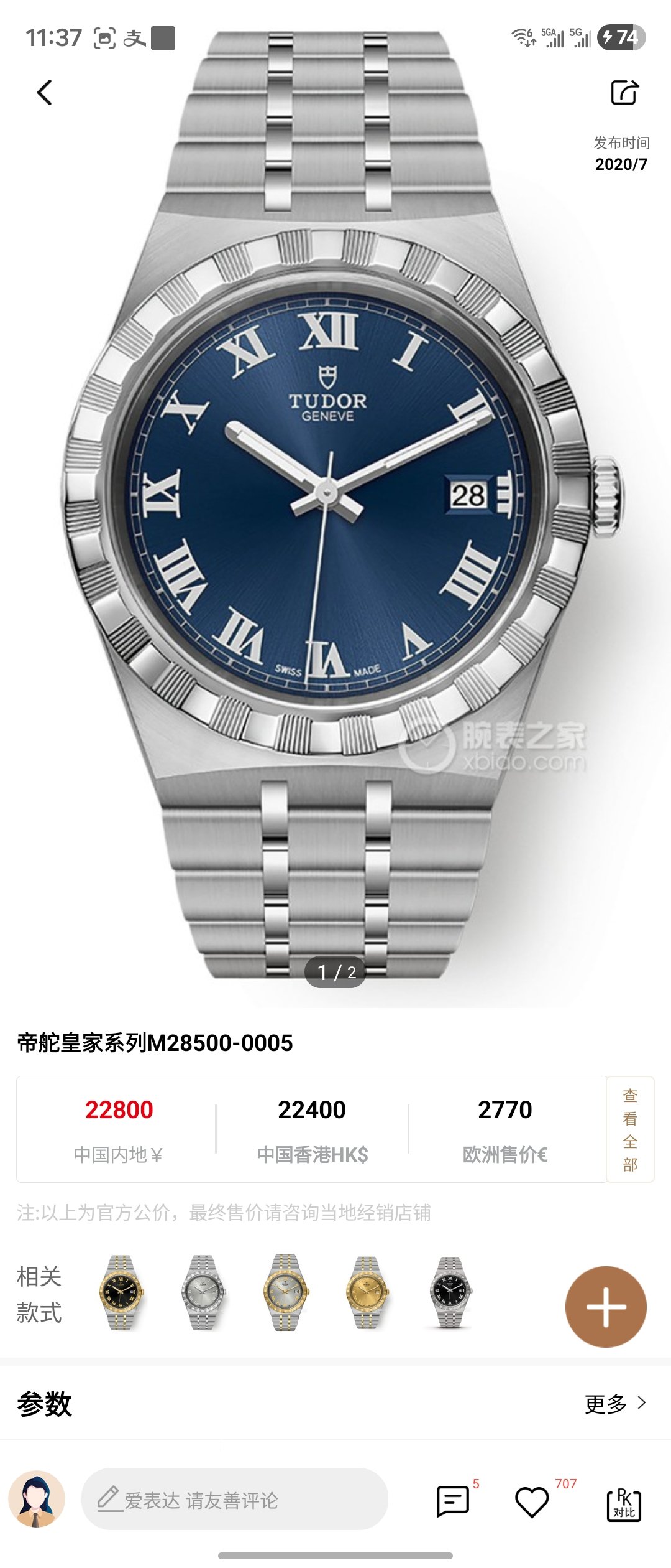 帝舵/Tudor 帝舵皇家系列 m28500-0005 自动上链 钢表壳 38毫米 专柜价22800 国行未使用,近期卡,保卡一直更新中
