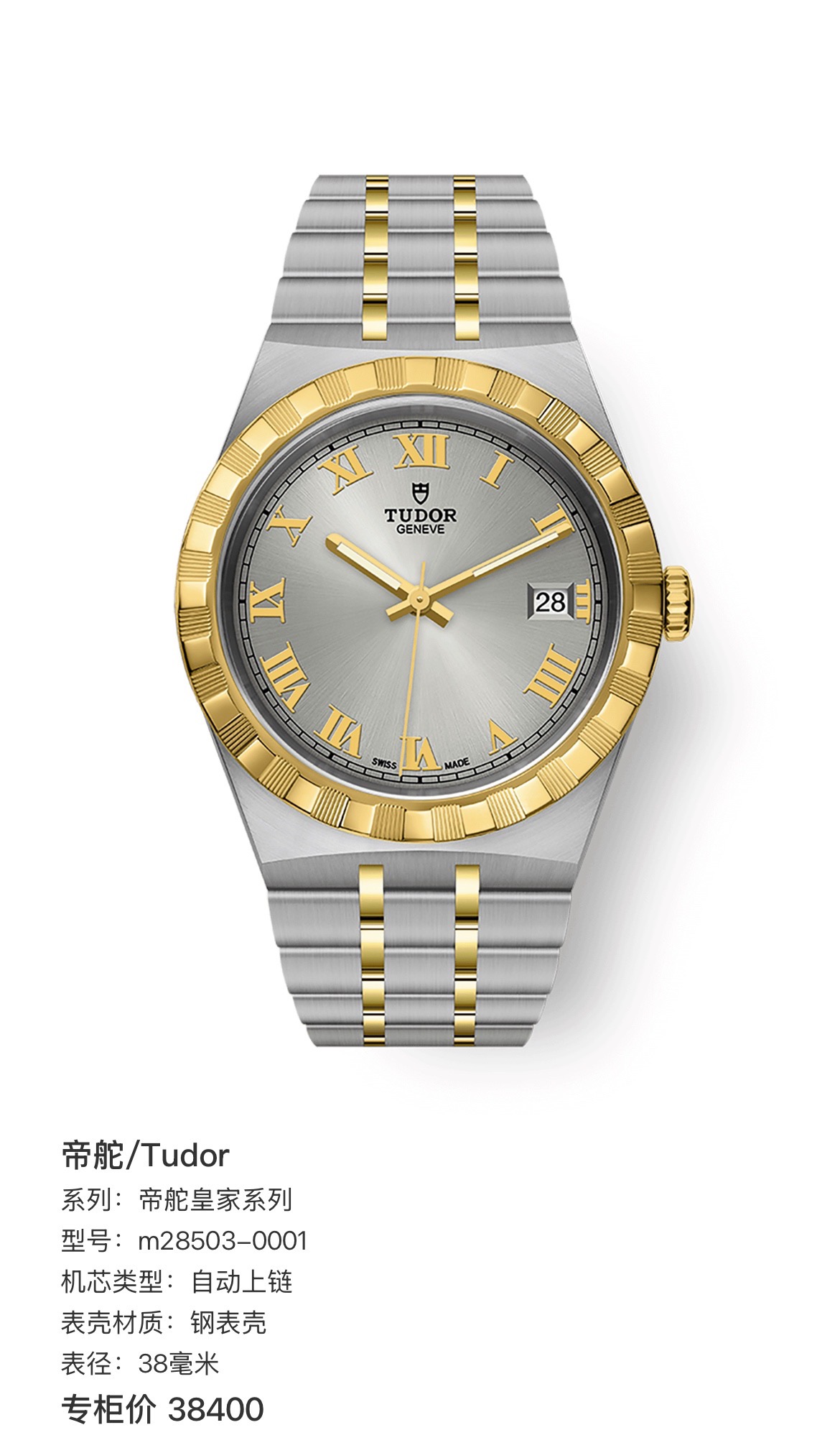 帝舵/Tudor 帝舵皇家系列 m28503-0001 自动上链 钢表壳 38毫米 专柜价38400