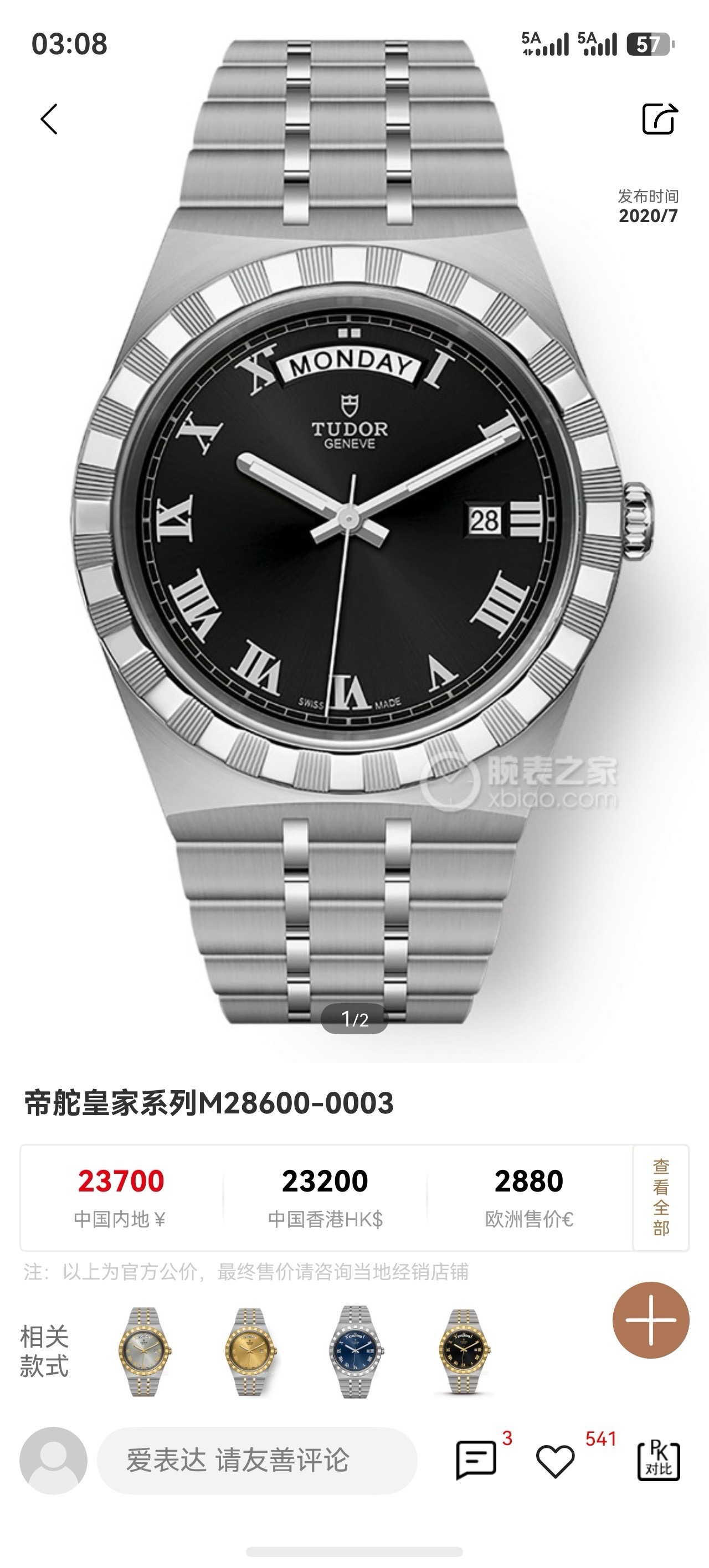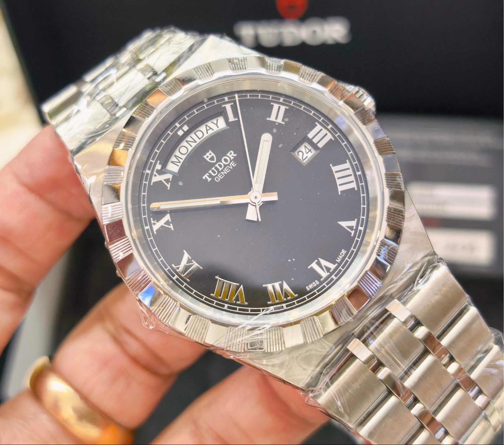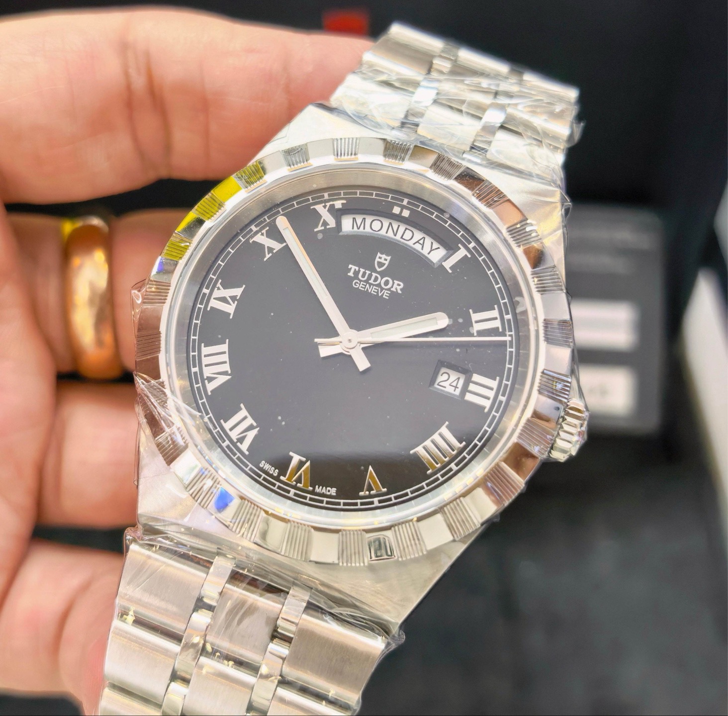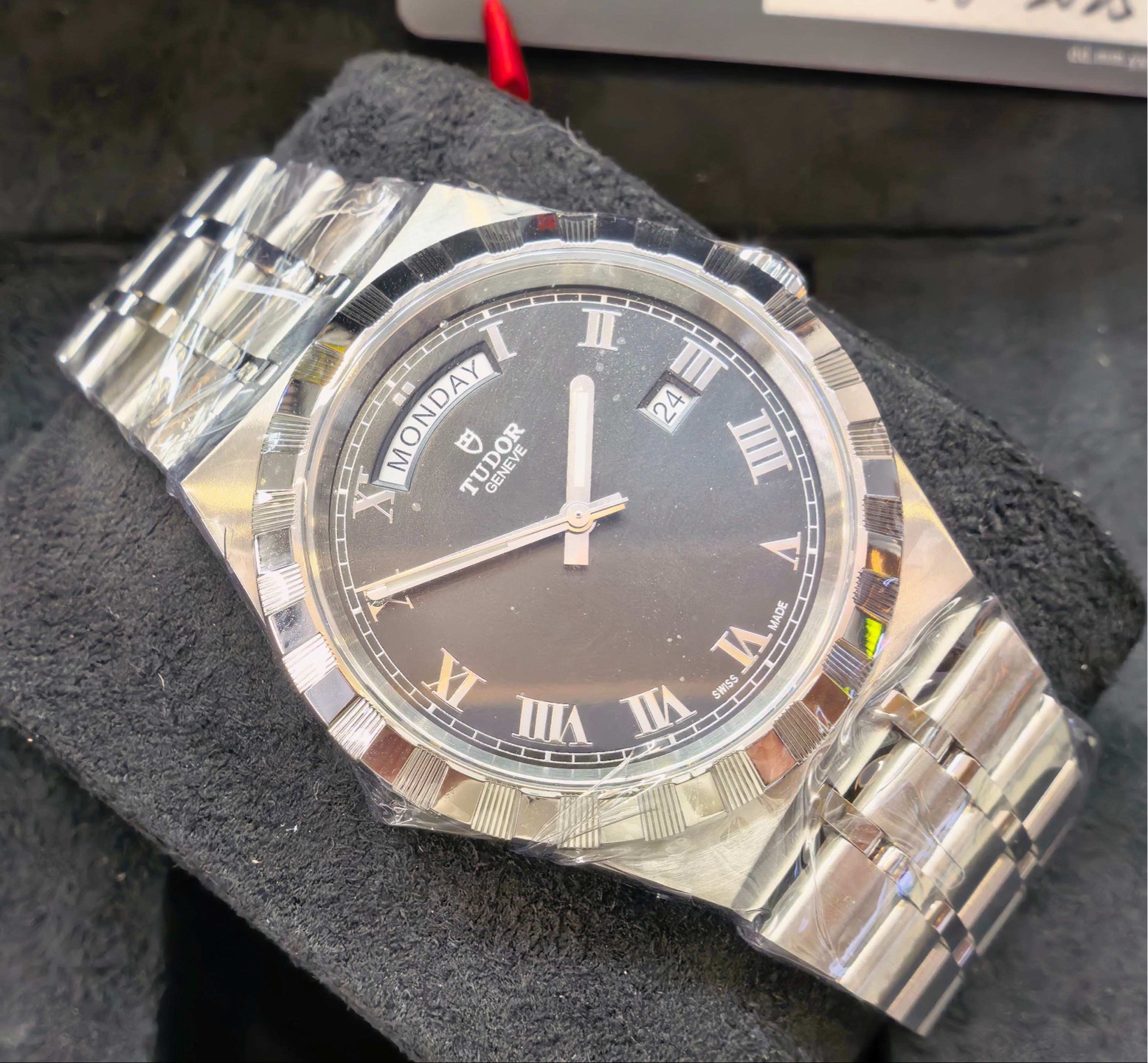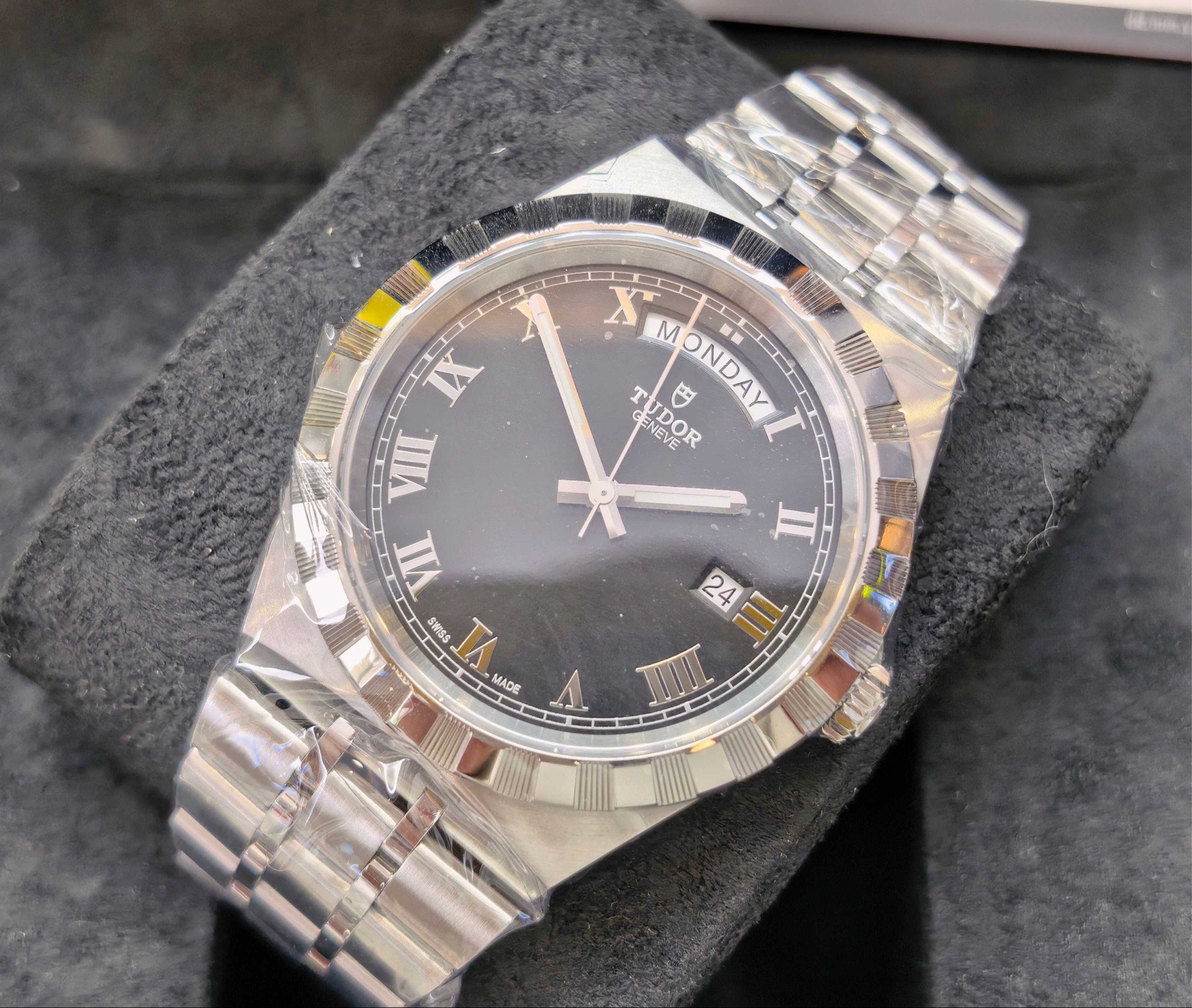 全新帝舵/Tudor帝舵皇家系列28600-0003 表径41盘 自动机械表,精钢表壳,黑色盘面,搭配钻石罗马刻度,日期显示,星期显示,工价23700 未使用好