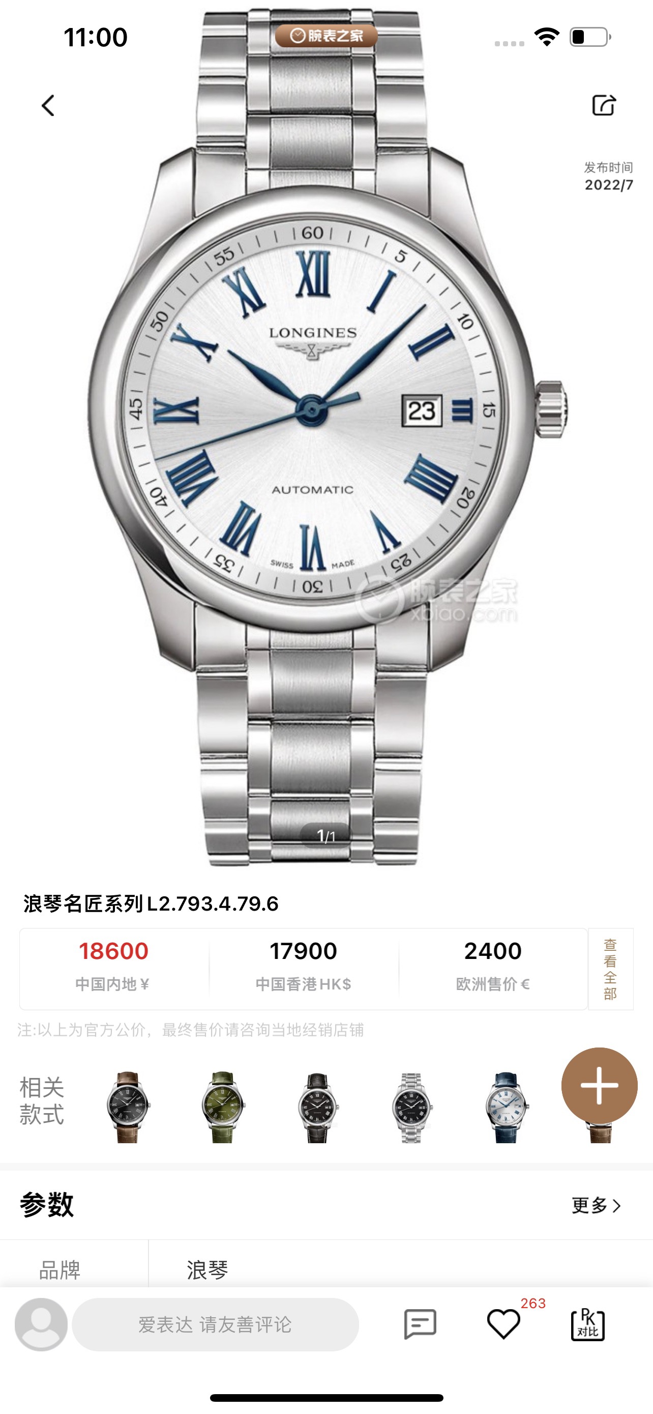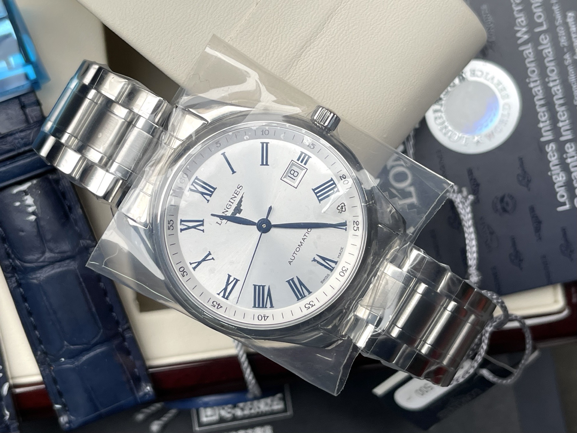 浪琴名匠系列L2.793.4.79.6男士机械腕表,新款40mm表径,原价18600,新款蓝罗马,双表带可随意切换使用,闲置品未使用品,全套好价出。