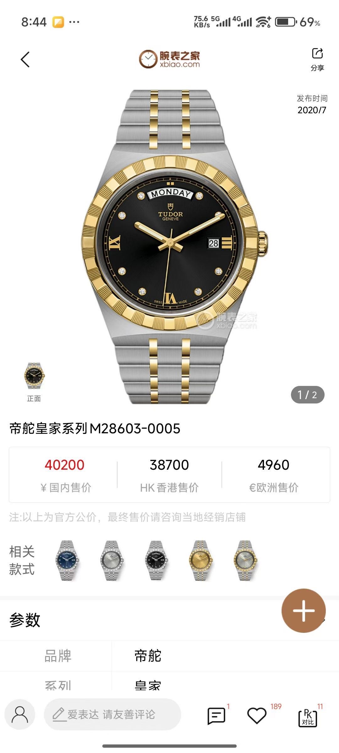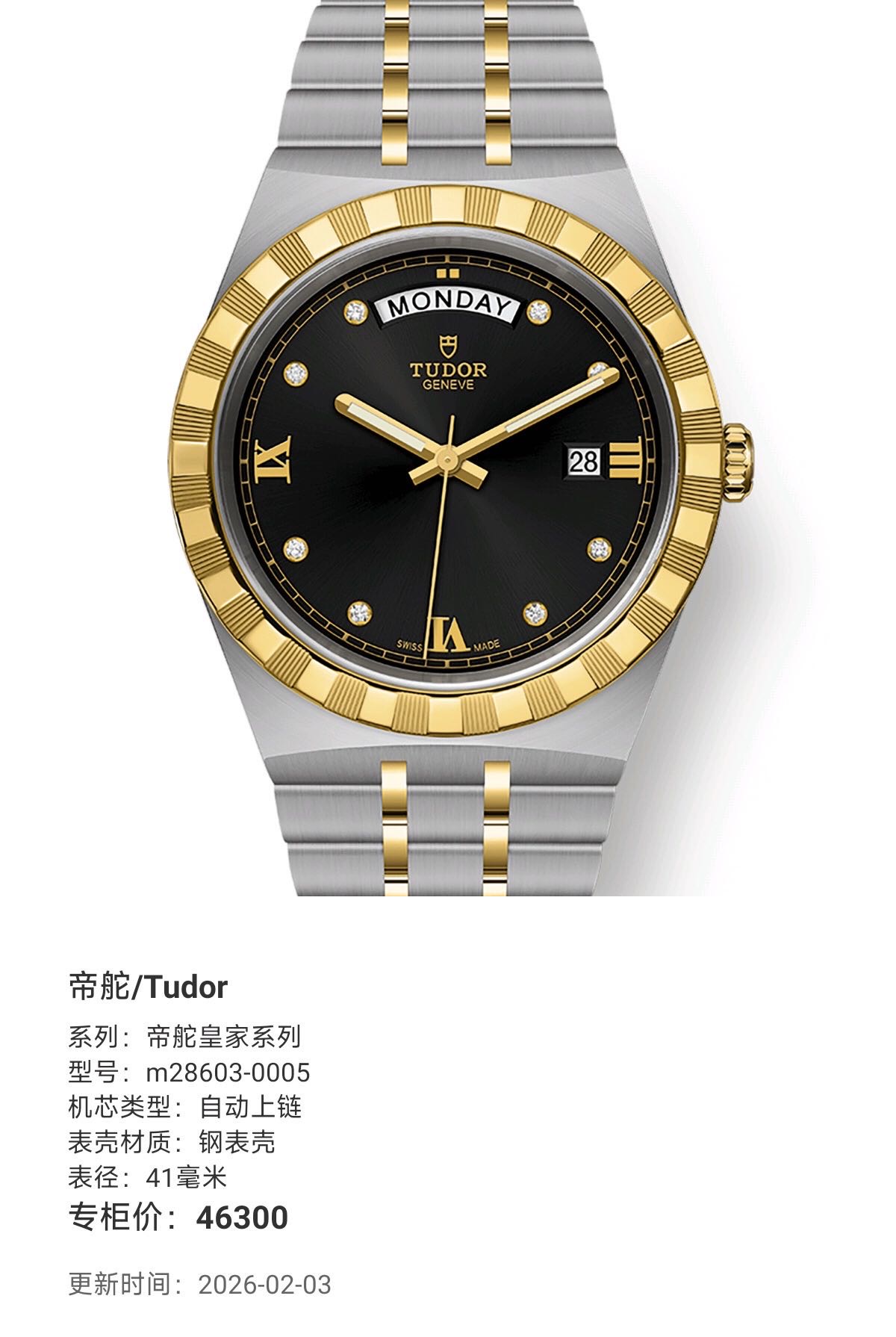 帝舵/Tudor 帝舵皇家系列 m28603-0005 自动上链 钢表壳 41毫米 专柜价46300