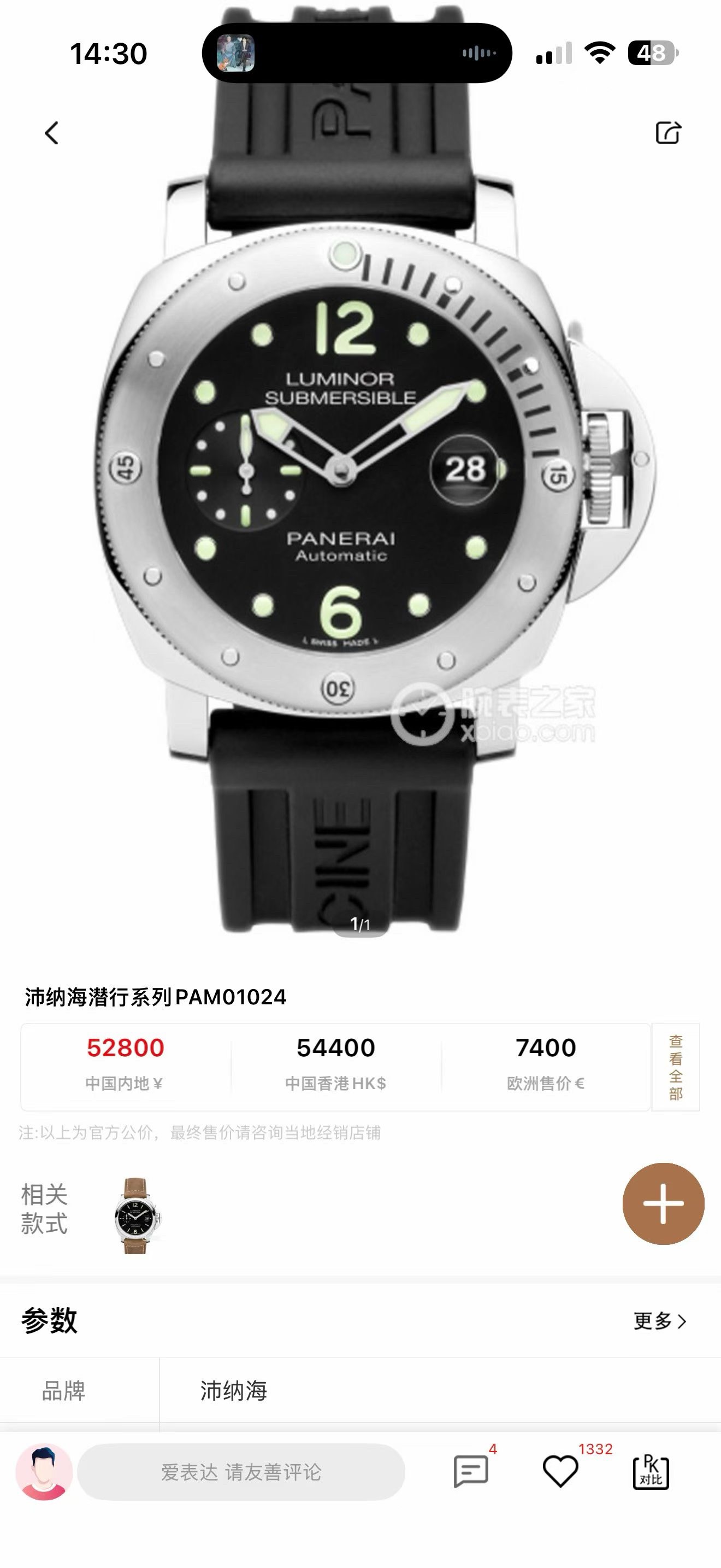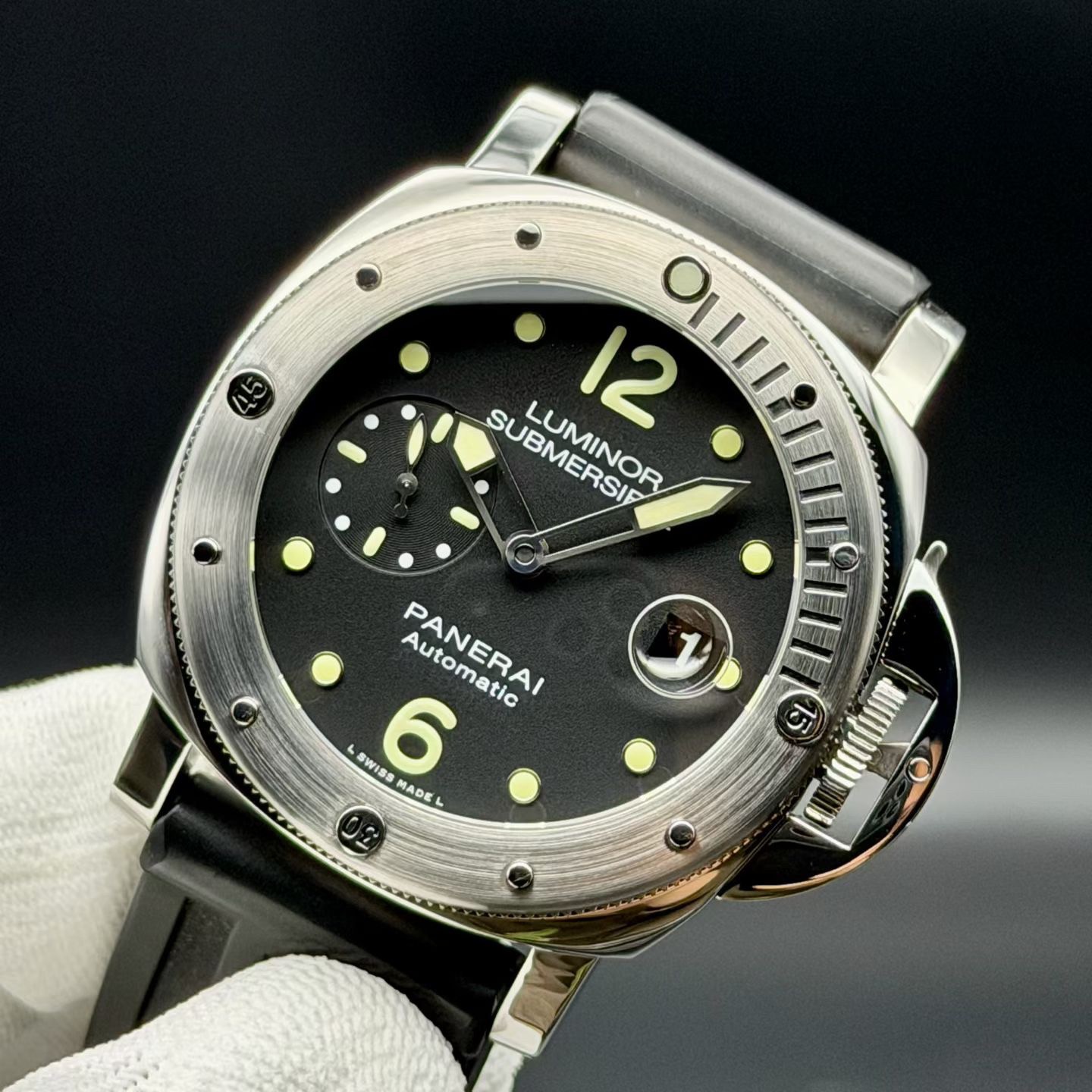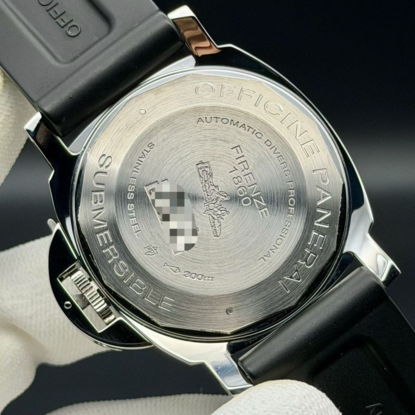 沛纳海PAM01024,表径44mm,可旋转潜水外圈,鱼雷秒针,带日历放大镜,经典护桥设计,夜光明亮,防水300m,潜水无压力,公价52800,现货单表好价