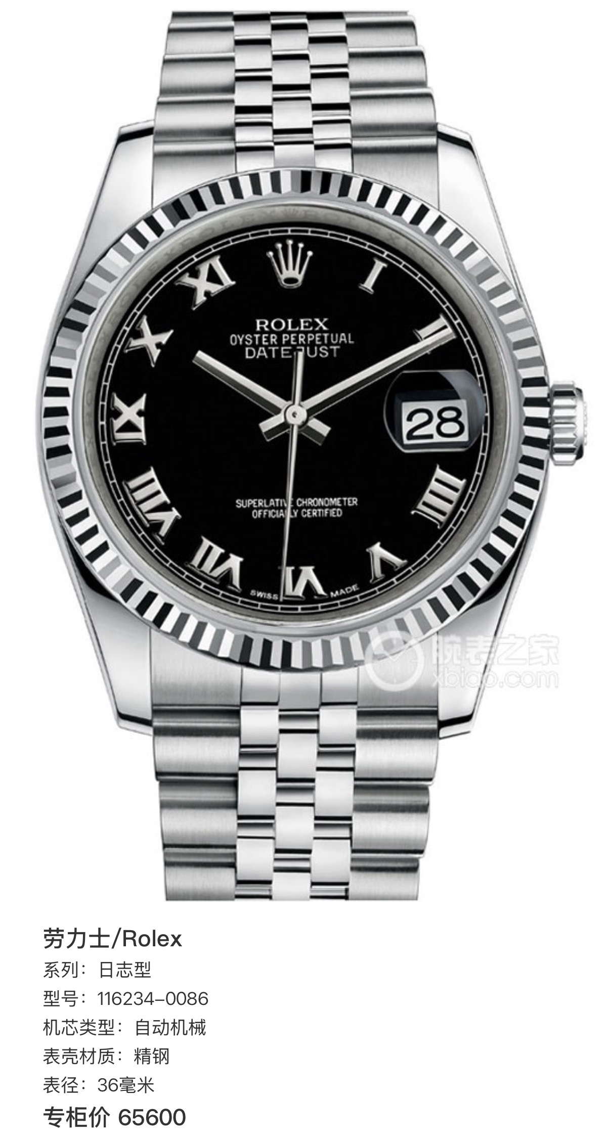 劳力士/Rolex 日志型 116234-0086 自动机械 精钢 36毫米 附件:有盒 专柜价65600