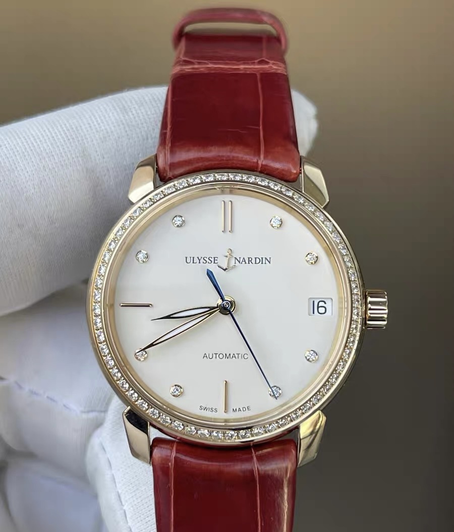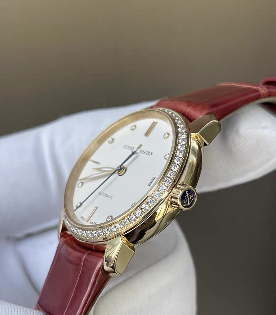 31mm表径,18k玫瑰金镶钻表壳,日期显示