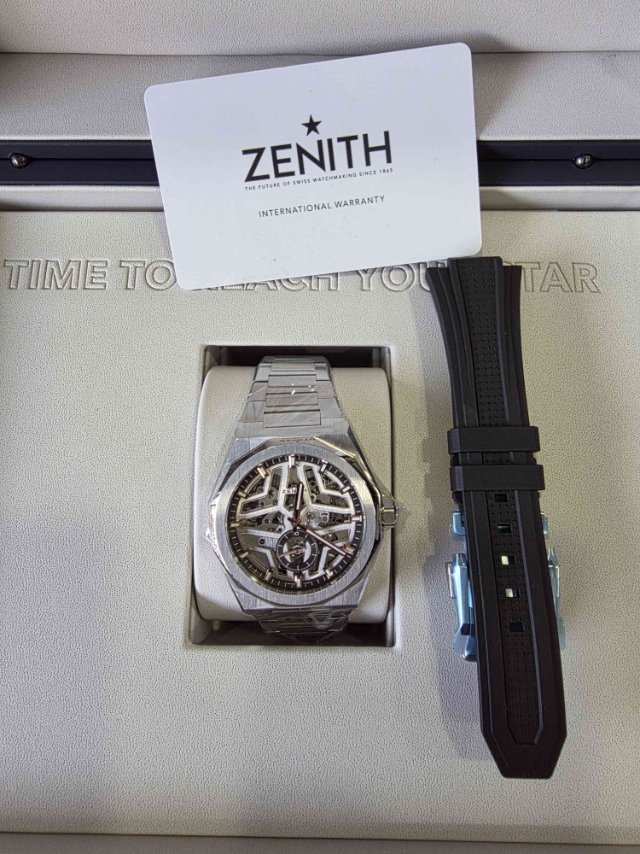 真力时/Zenith DEFY系列 03.9300.3620/80.I001 自动上链 精钢 41毫米 专柜价98000 国行未使用,近期卡。双表带