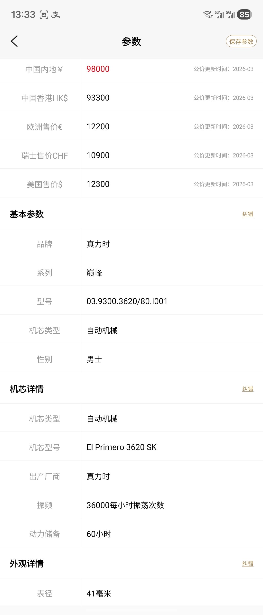 真力时巅峰Defy03.9300.3620/80.I001机械男性