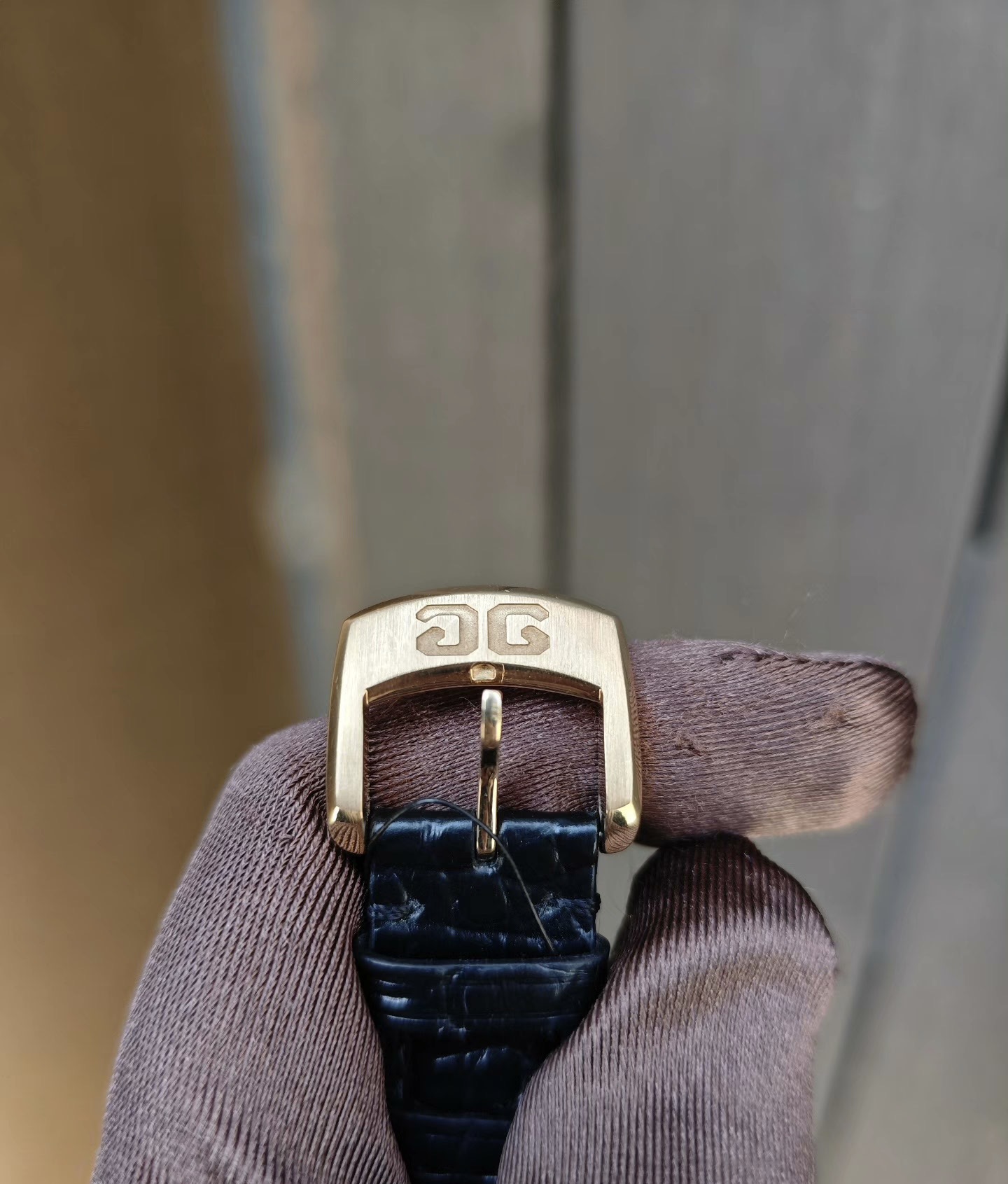 39mm表径,18k玫瑰金材质表壳,阿拉伯数字时标