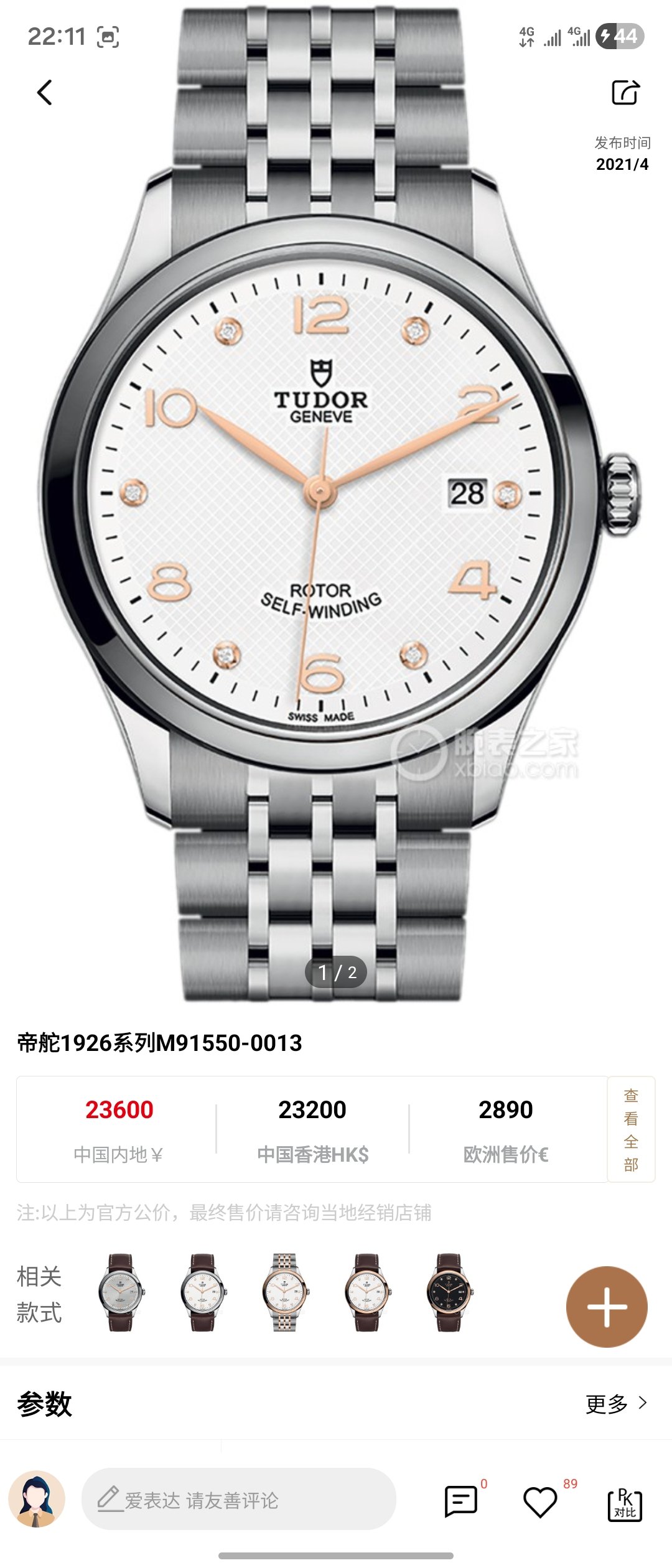 帝舵/Tudor 1926系列 m91550-0013 自动上链 钢表壳 39毫米 专柜价23600
