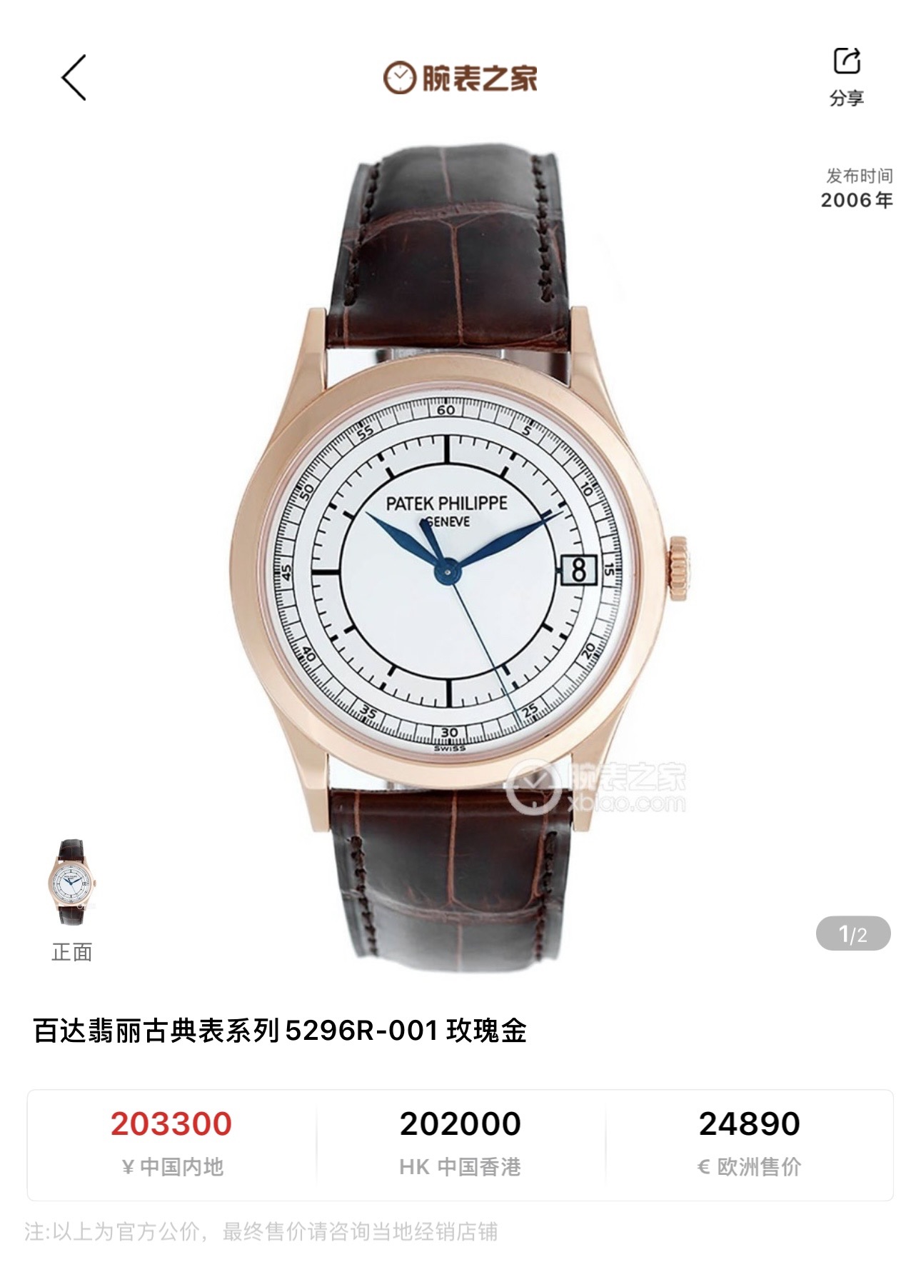 百达翡丽/Patek Philippe 古典表 5296R-001