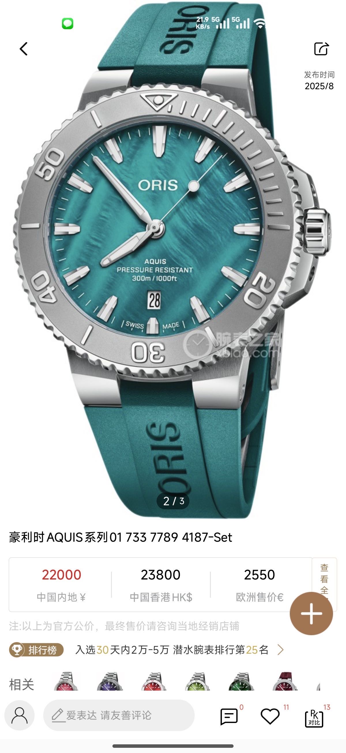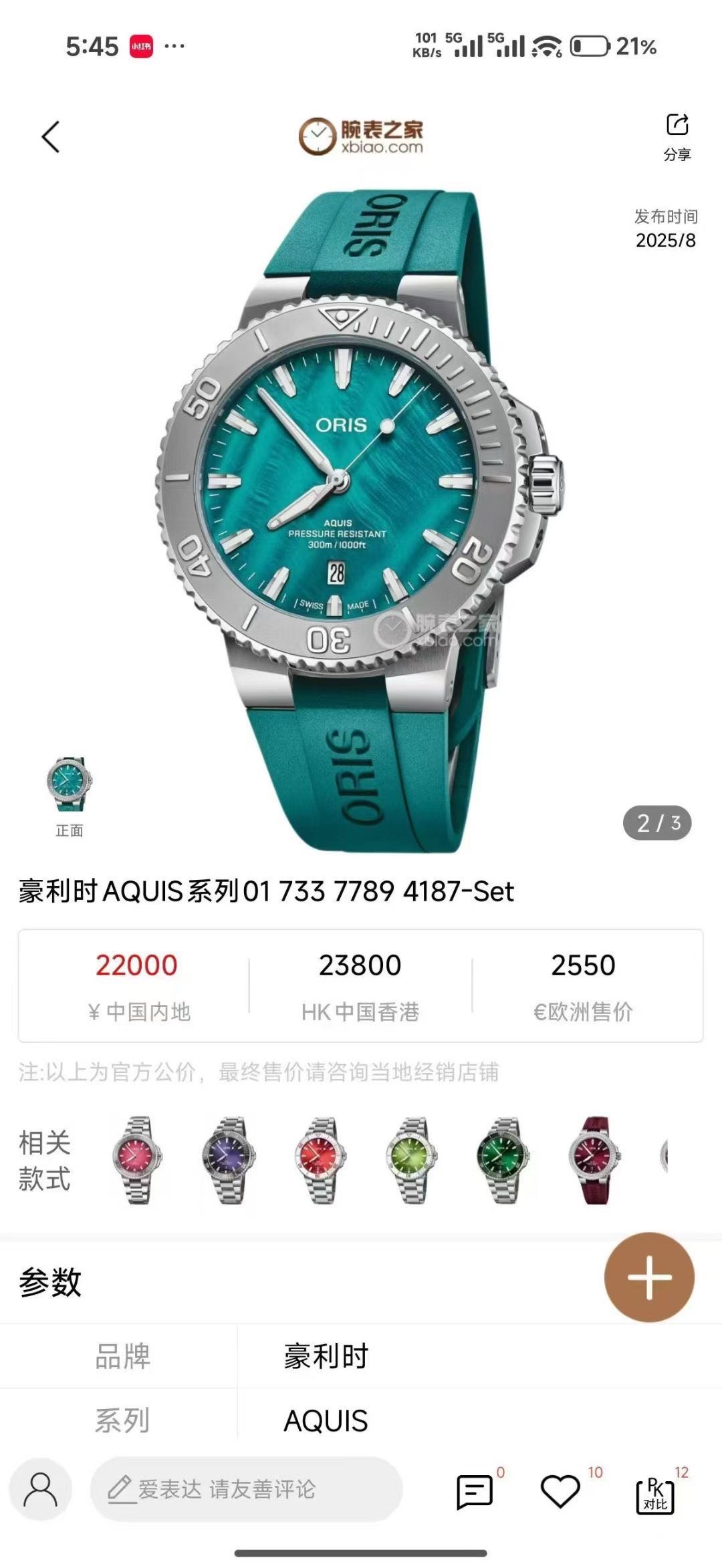 豪利时AQUIS系列01 733 7789 4187-Set(0173377894187Set)手表