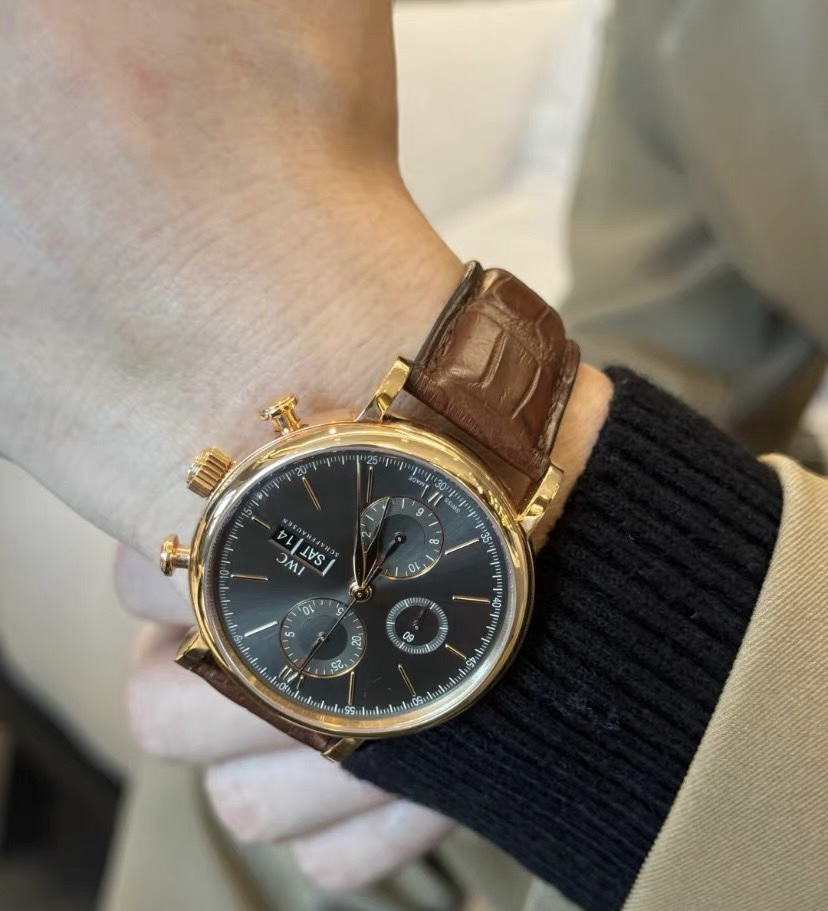 42mm表径,18k玫瑰金材质,日期 星期 计时