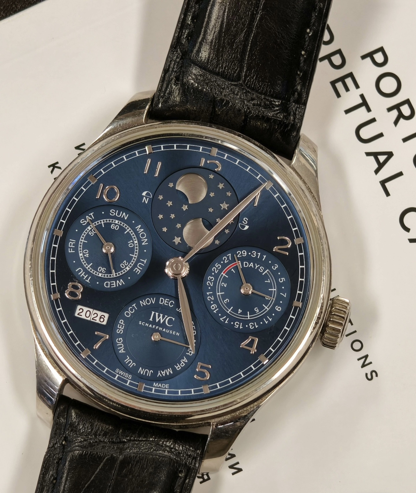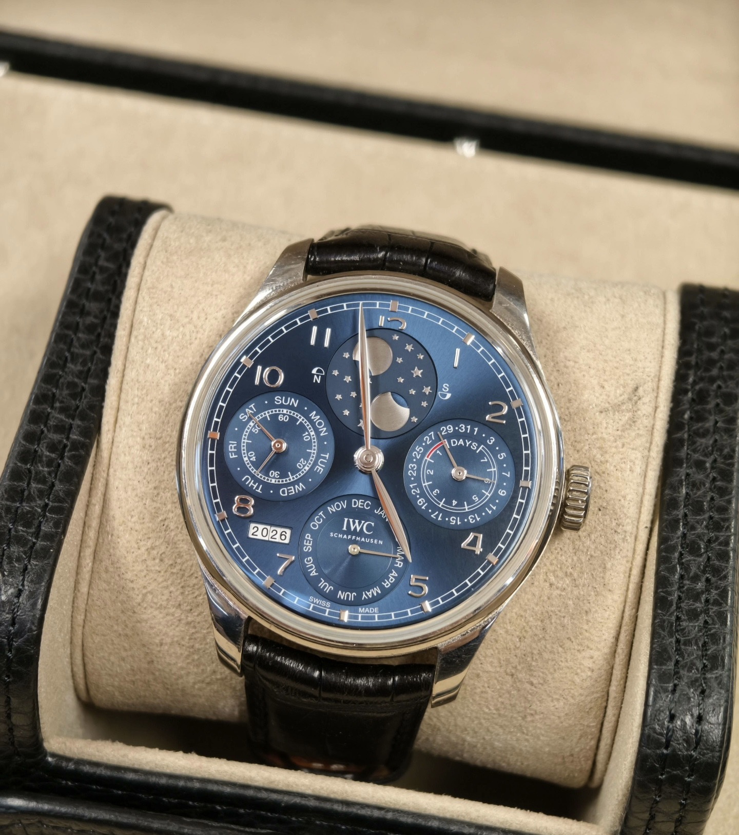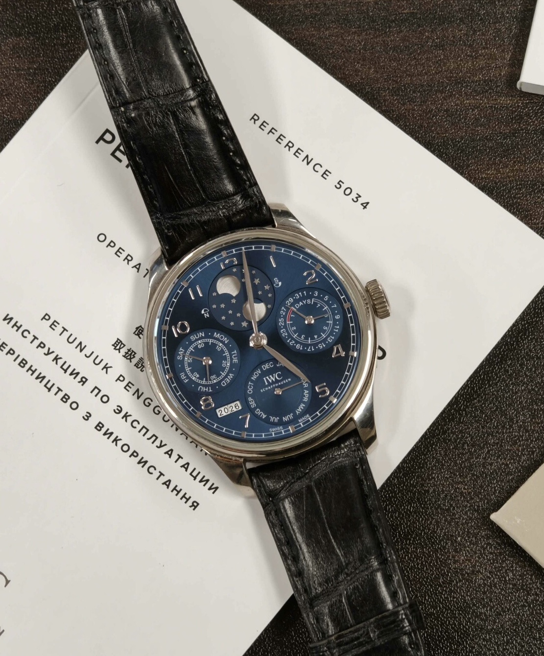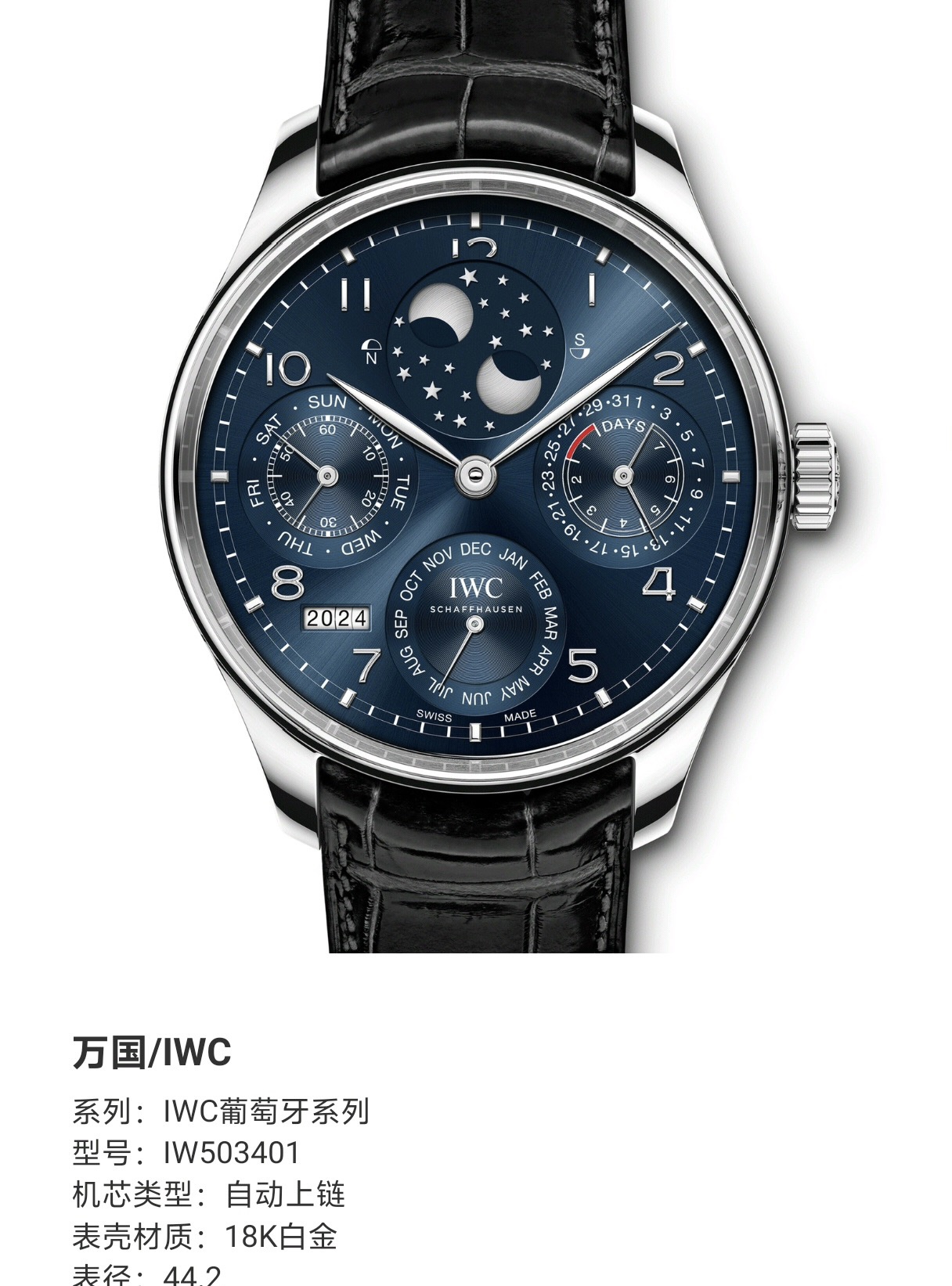 44mm表径,18k白金材质表壳,日期 星期 月份