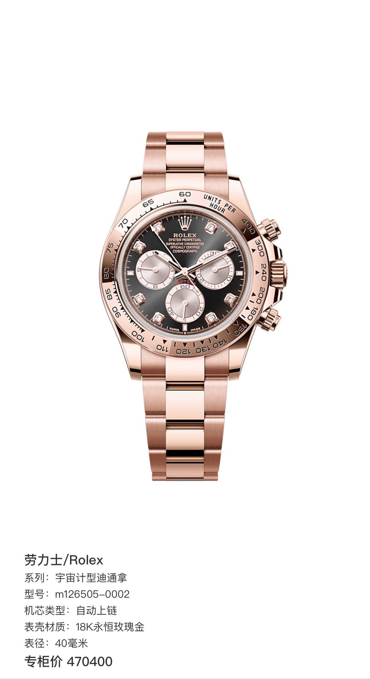 劳力士/Rolex 宇宙计型迪通拿 m126505-0002 自动上链 18K永恒玫瑰金 40毫米 专柜价470400