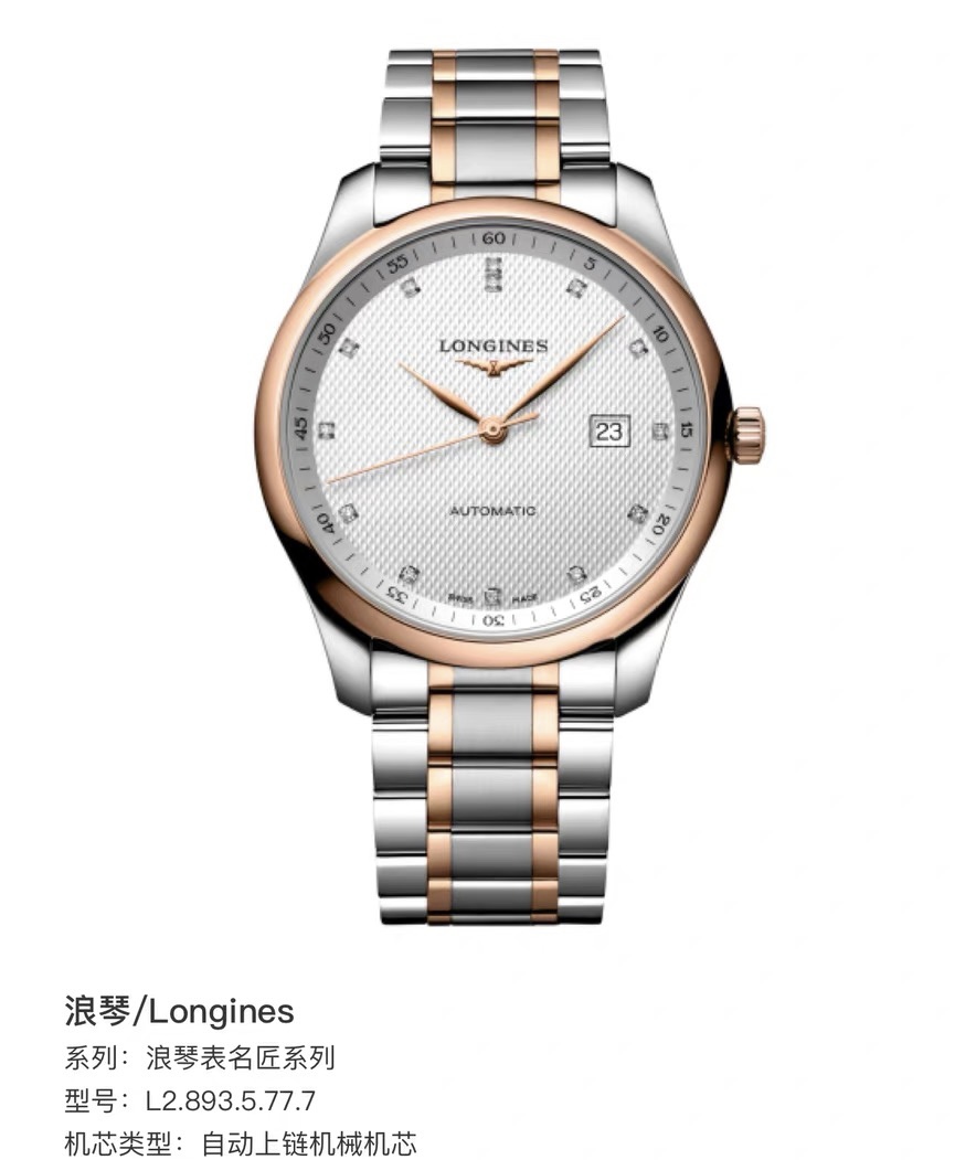 浪琴名匠L2.893.5.77.7机械男性