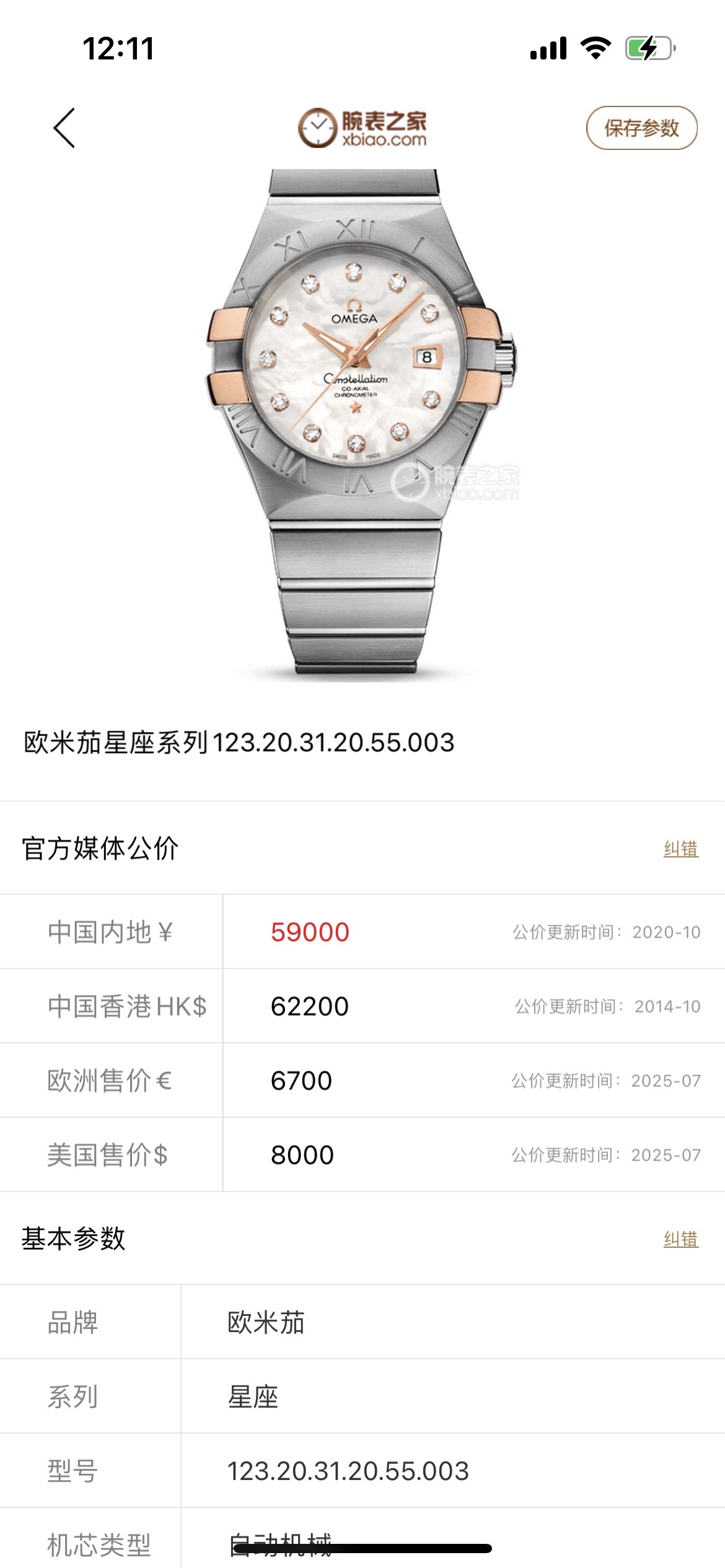 欧米茄星座123.20.31.20.55.003机械女性