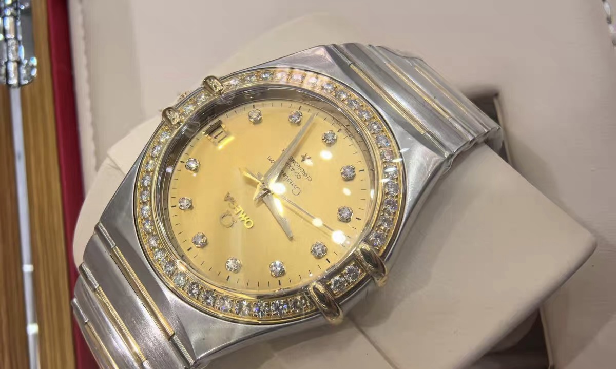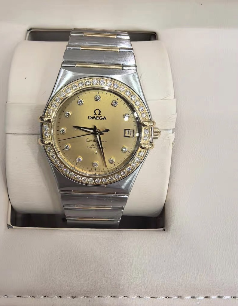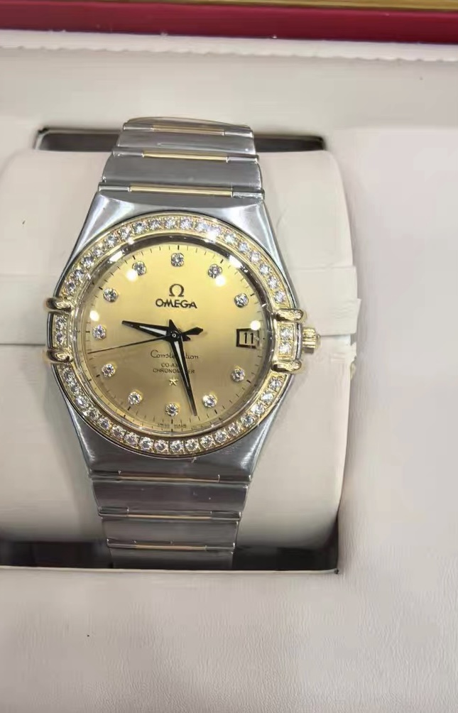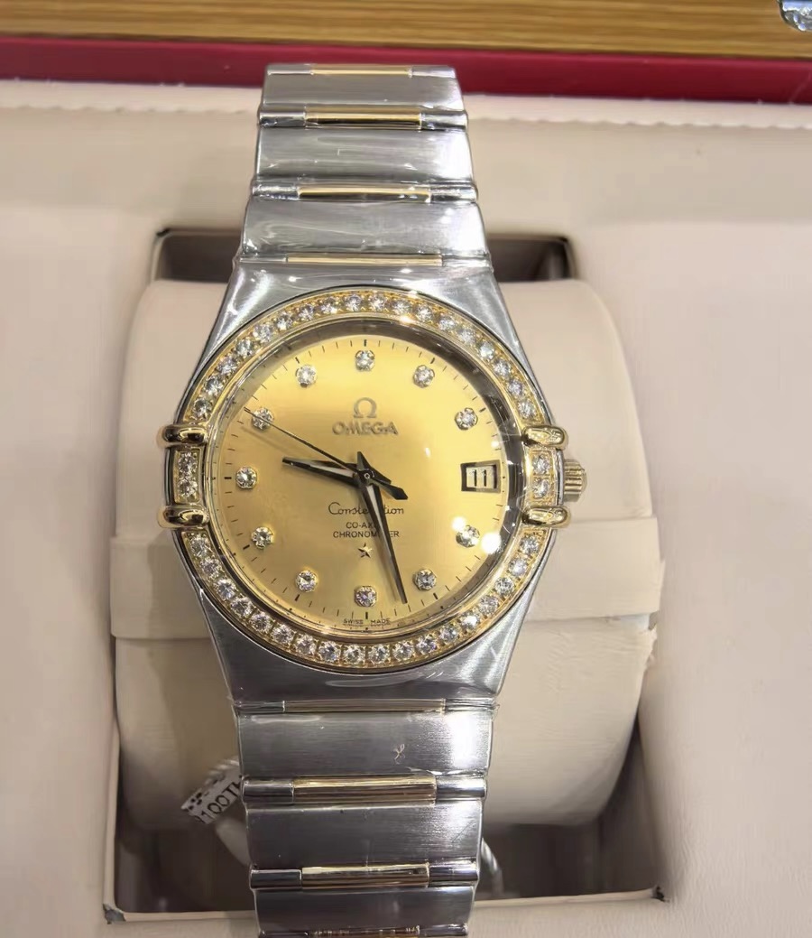 35mm表径,精钢材质表壳,日期显示,镶钻时标