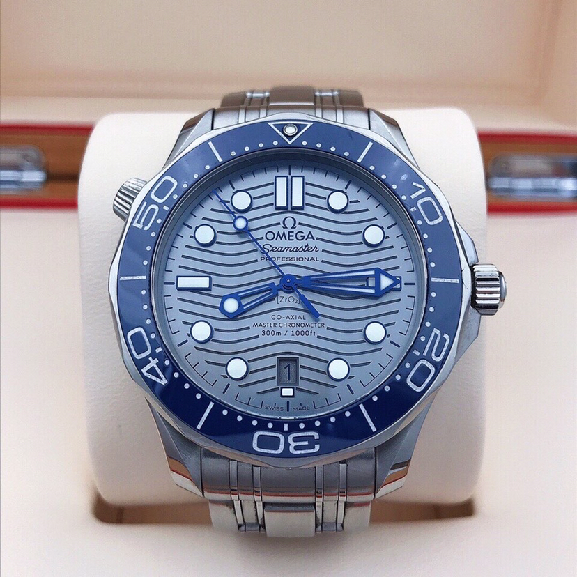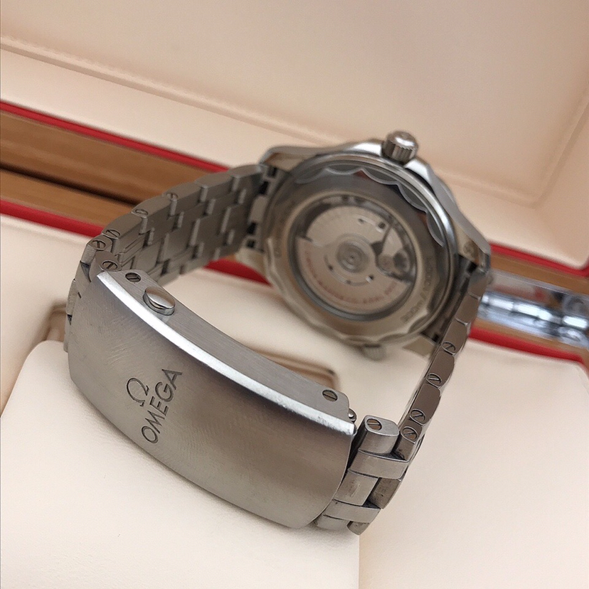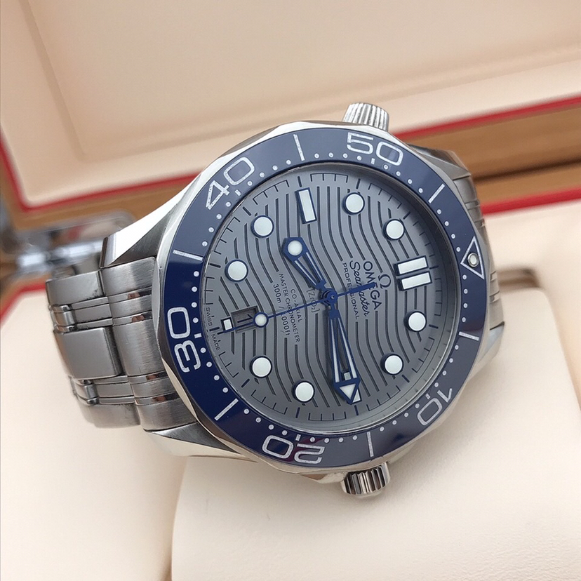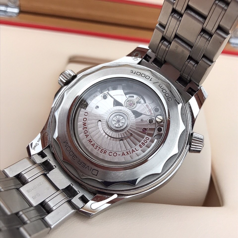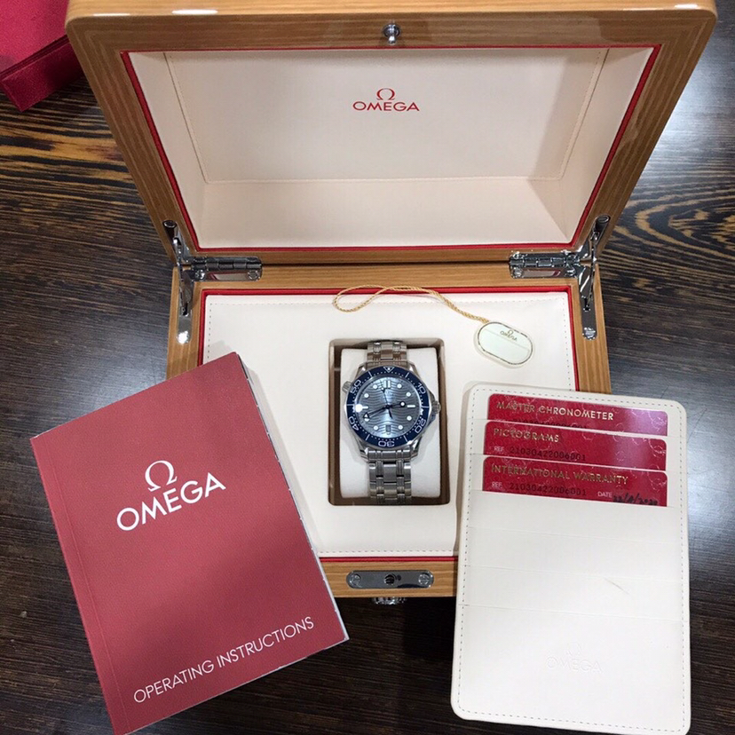 欧米茄海马系列210.30.42.20.06.001,精钢材质,42mm表径,蓝色陶瓷圈,300米防水,日期显示,透底880自动机械,专柜售价41800,2020年全套好价分享