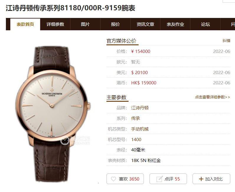 现货 江诗丹顿传承系列18K玫瑰金手动机械男表 型号:81180/000R-9159 表径:40mm 附件:无-----专柜价:154000元 现好价🉐 单表