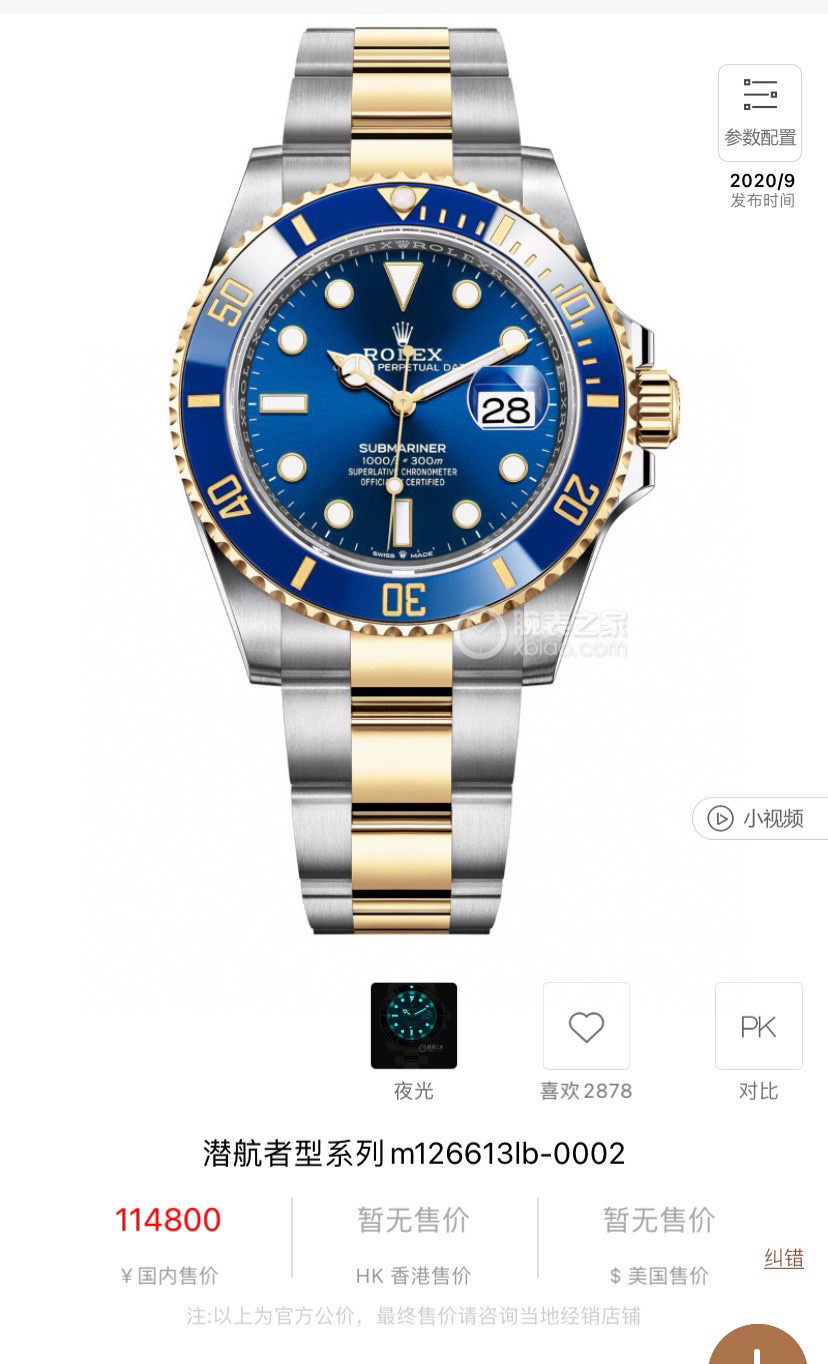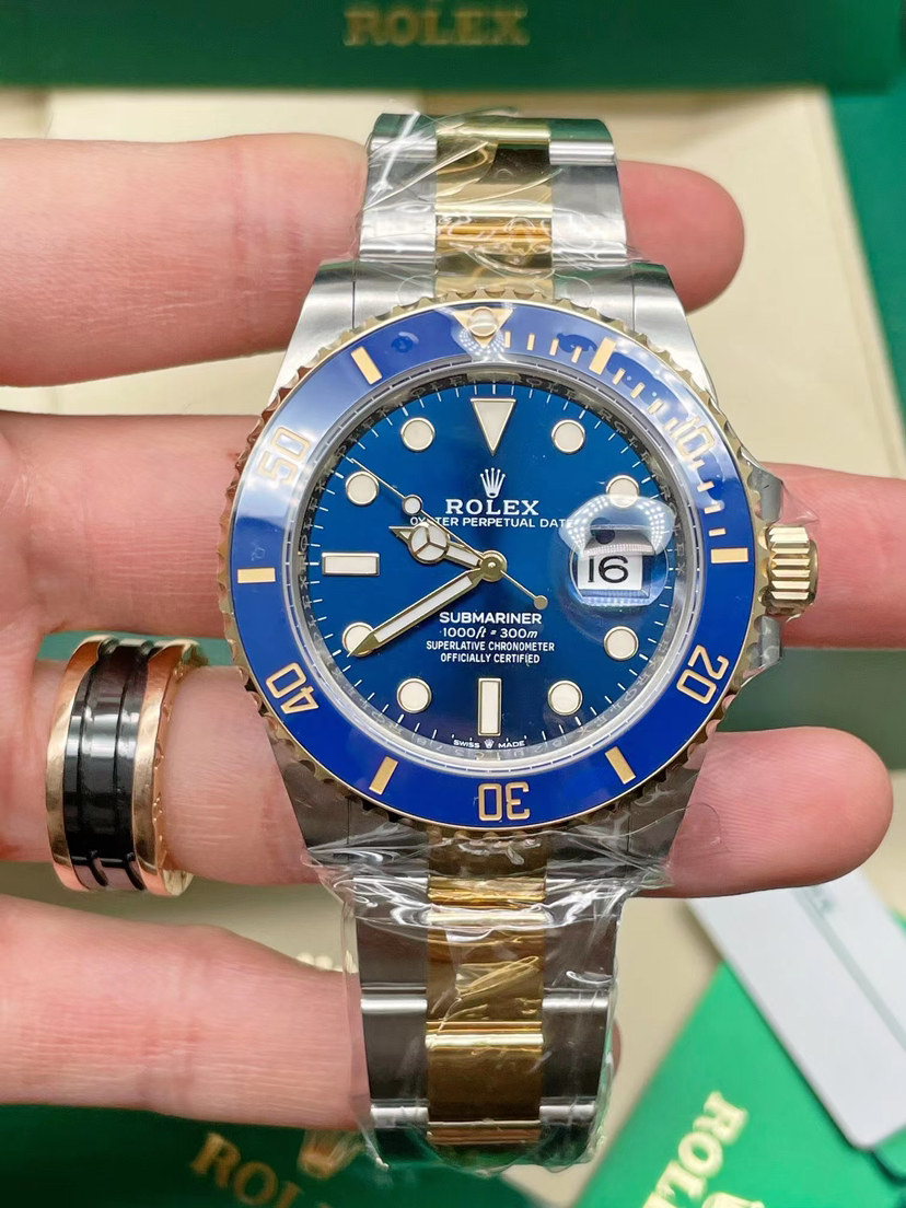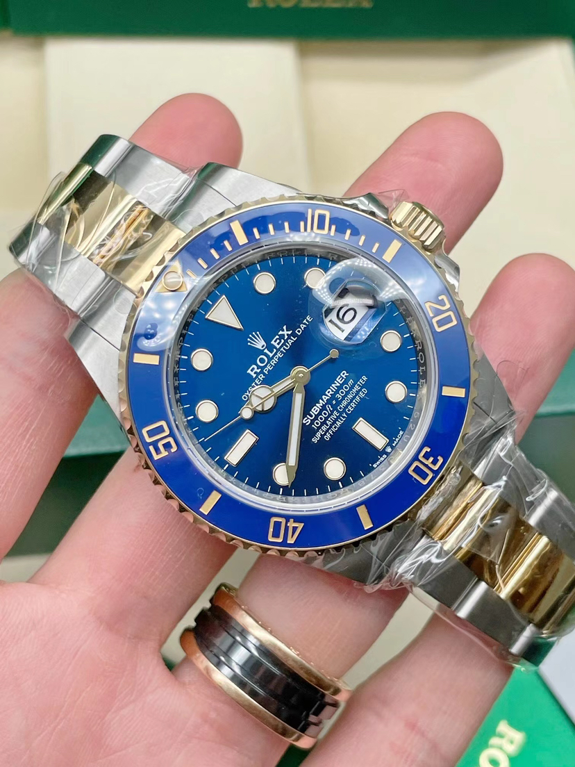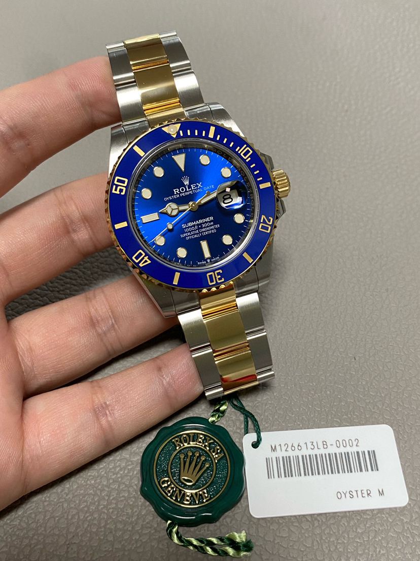 劳力士Rolex,潜航者型126613LB-0002,新款间金蓝水鬼,表径41毫米,深蓝色表盘,日期显示,专柜售价114800元,国内现货,全球联保五年。