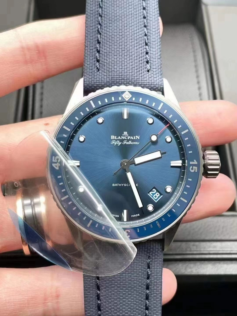 【未使用近期卡】宝珀五十噚5000-0240-O52A蓝陶瓷,43.6mm表径,磨砂缎面灰色陶瓷材质,未使用全套,现好价