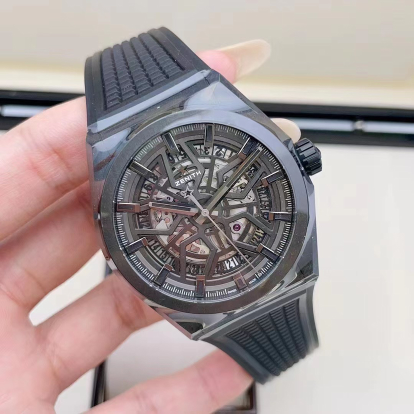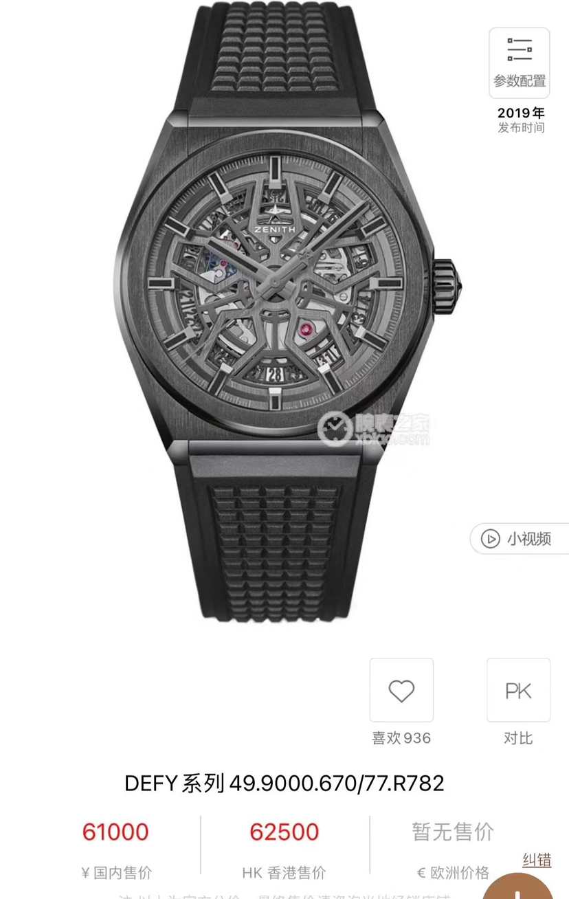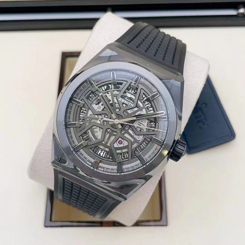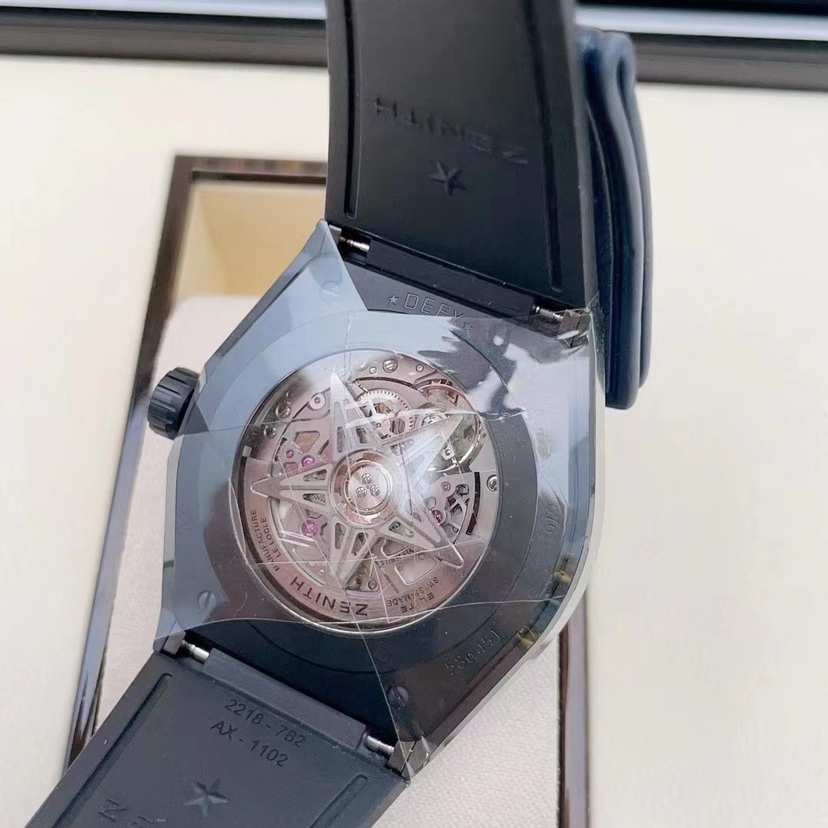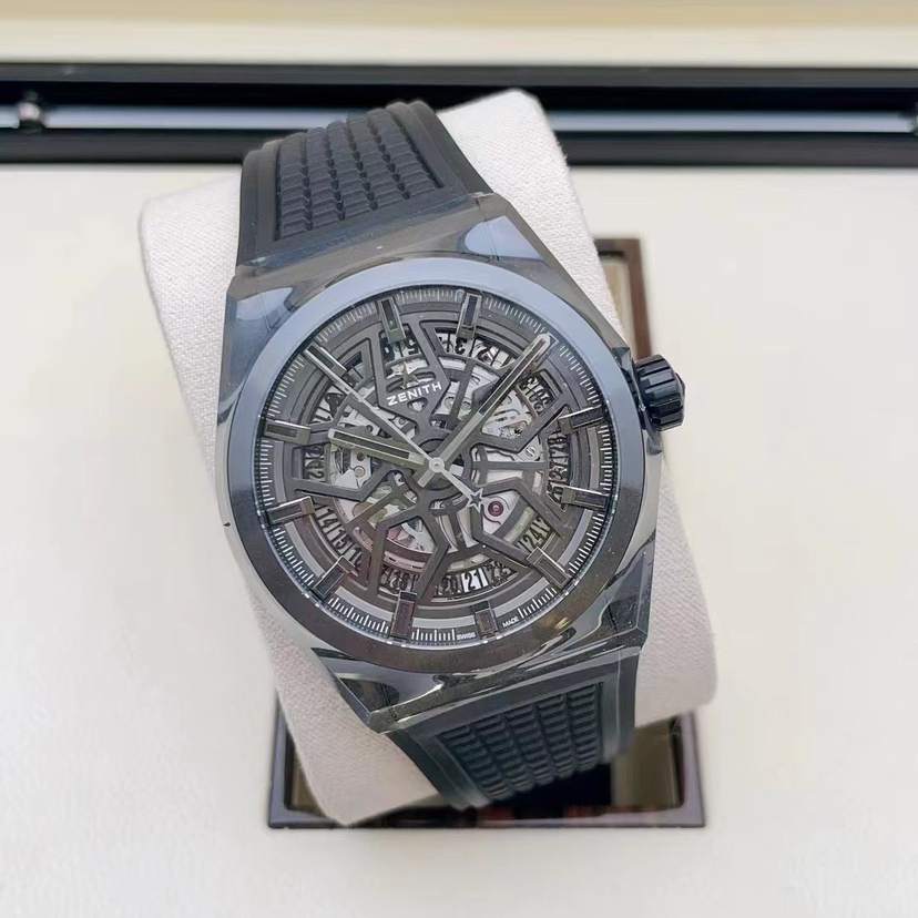 未使用真力时/Zenith Defy系列 型号:49.9000.670,机芯类型:自动机械机芯表壳厚度:10.75毫米表壳材质:黑色陶瓷表壳直径:41 毫米功能:日期显示专柜价61000,未使用全套特价~
