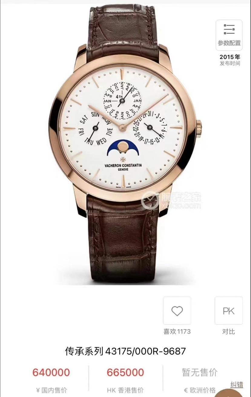 江诗丹顿 传承 43175/000R, 41mm,18K玫瑰金,公价:640000 22年12月卡 万年历