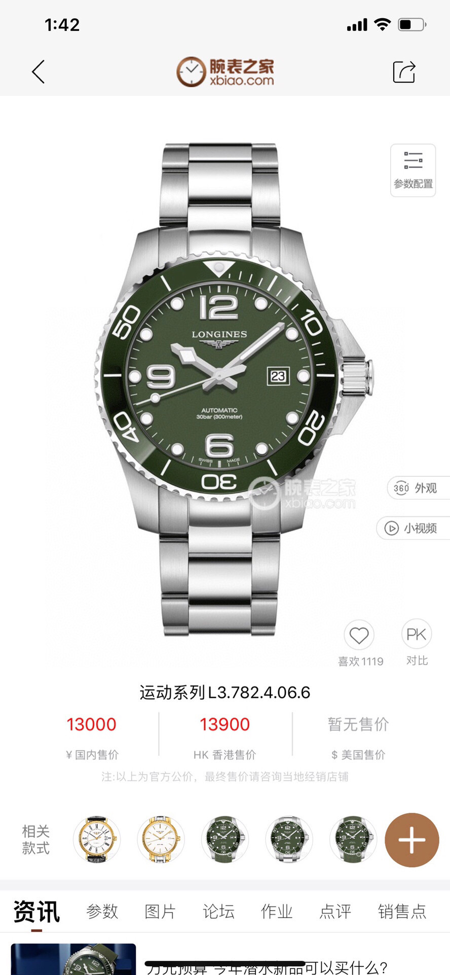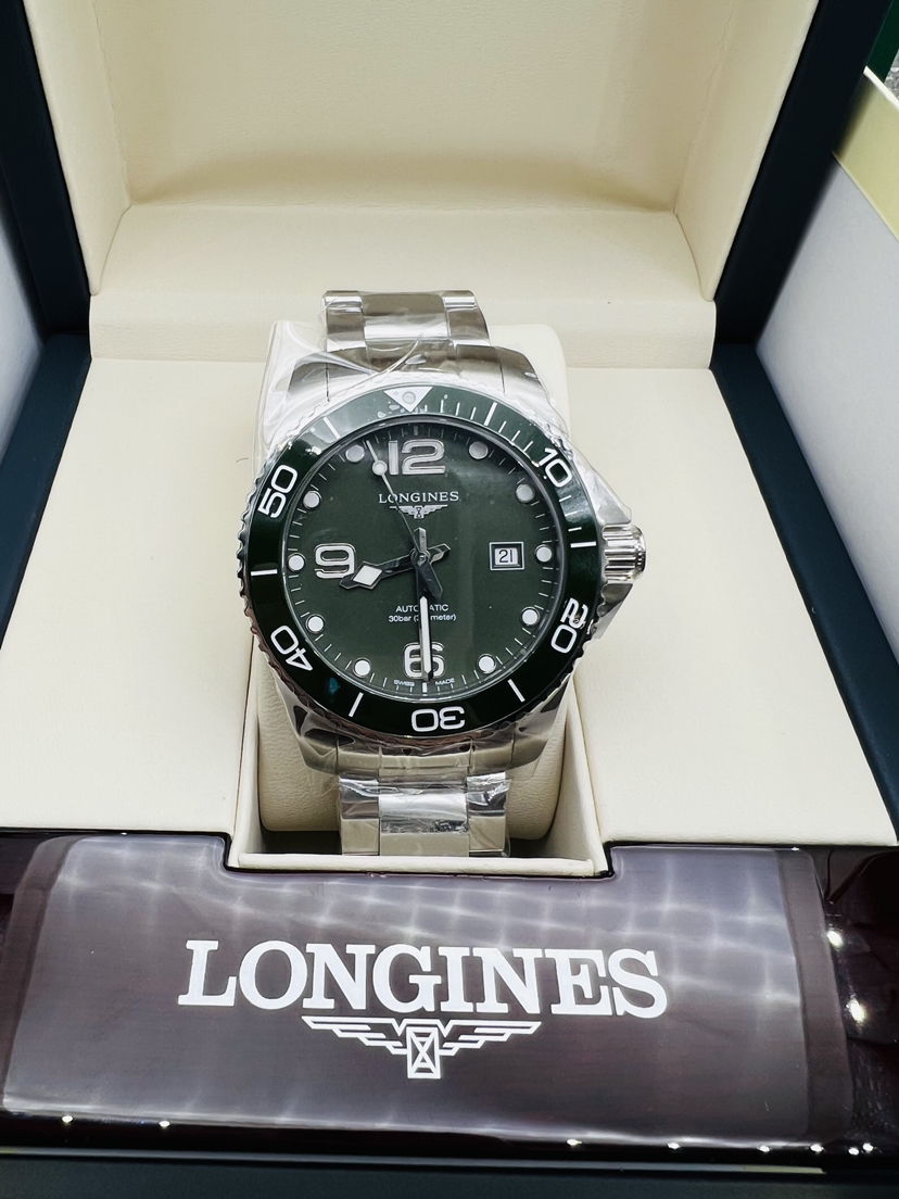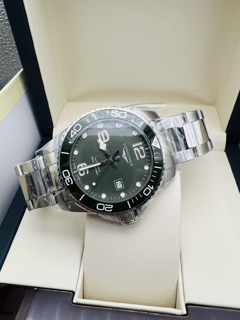 浪琴康卡斯系列L3.782.4.06.6男士自动机械男士腕表,热门新款陶瓷绿圈浪琴水鬼 表径43mm 参考专柜价格13000 超级热门 现货未使用好价