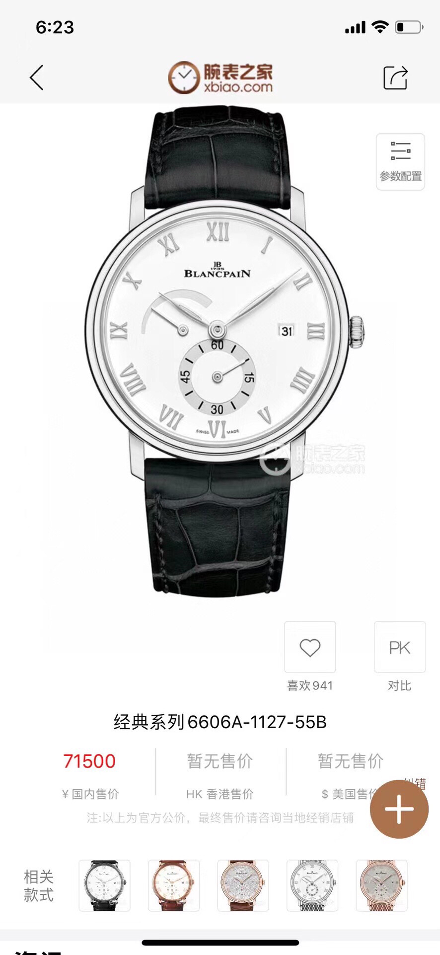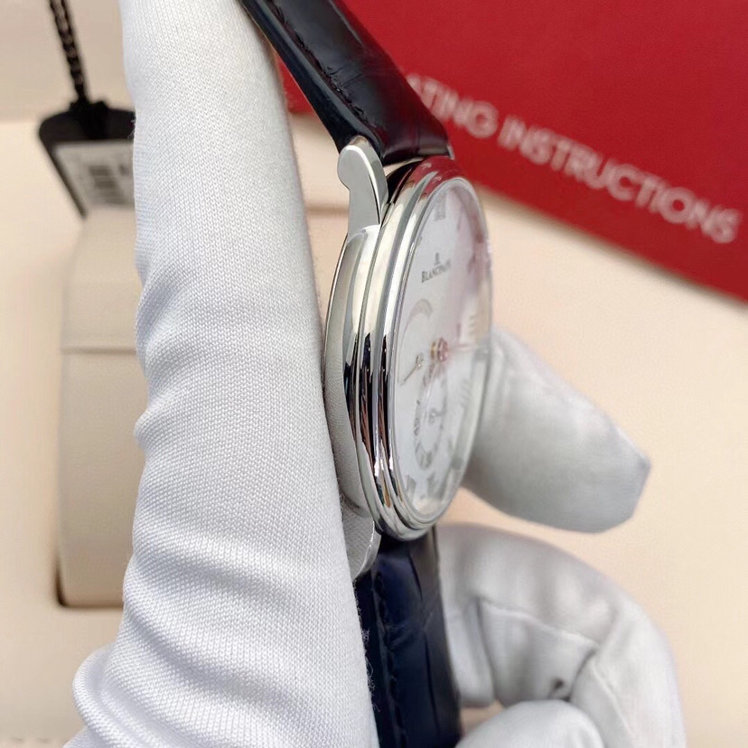 未使用品宝珀经典系列6606A-1127-55B手动机械男士腕表,表径:40mm材质:精钢附件:原装盒 保卡功能:日期显示 动力储备显示公价:71500