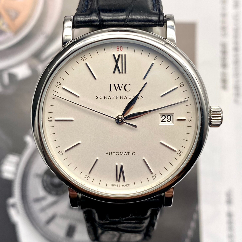 万国 柏涛菲诺系列 型号:IW356501 材质:精钢 镜面:蓝宝石玻璃 表盖:密底 表扣:针扣 表径:40mm 机芯类型:自动机械机芯 成色:97新 附件:全套 公价:39500